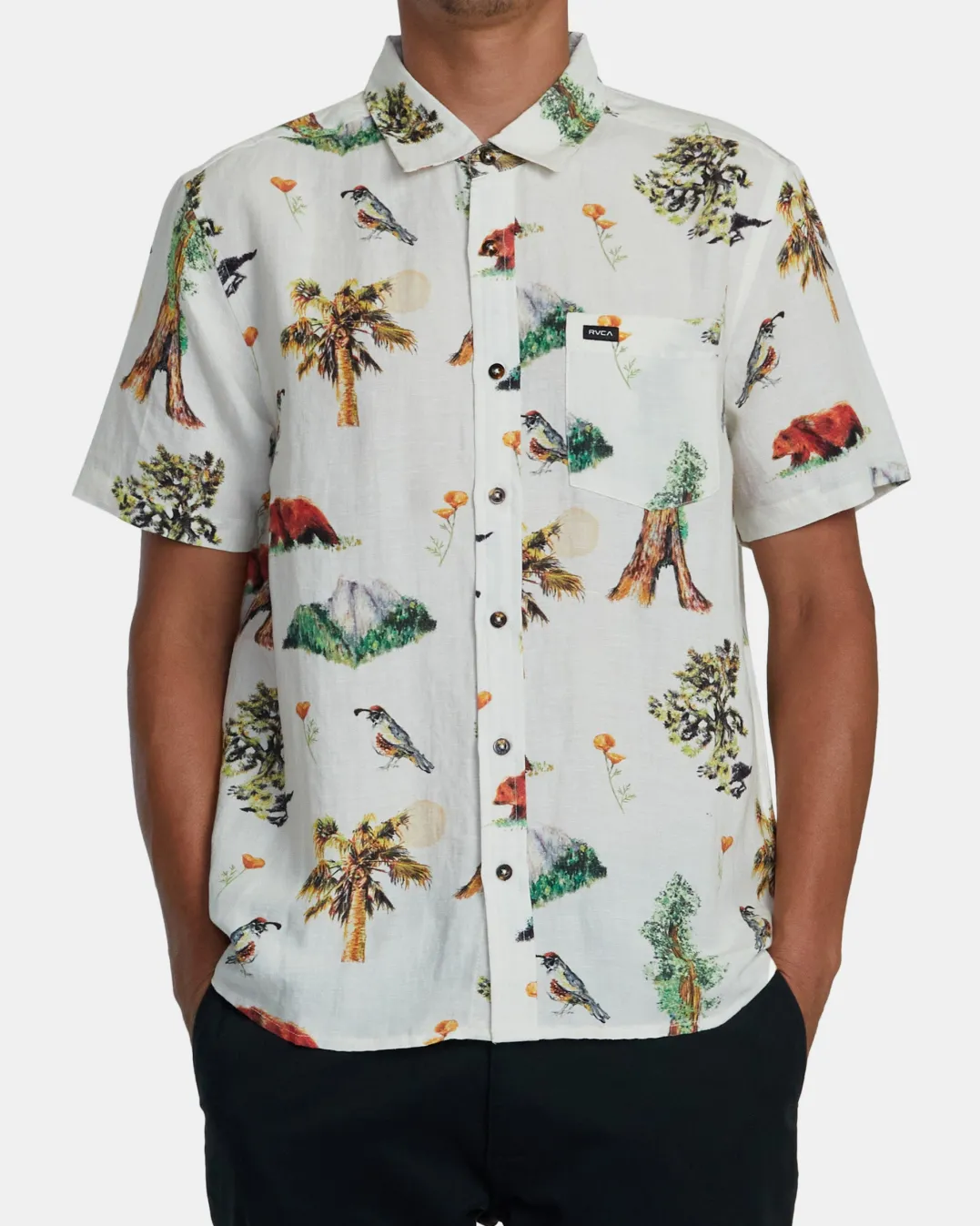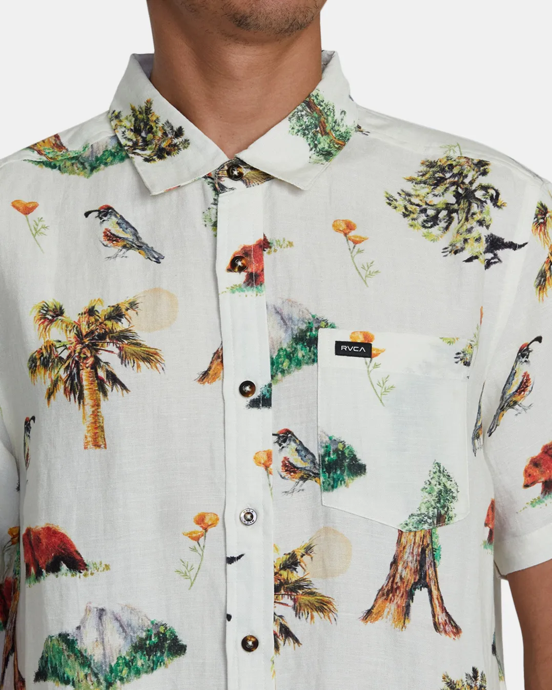 Step out in style with RVCA’s Artifacts Short Sleeve Woven Shirt. Crafted from a lightweight linen-viscose blend fabric in a slightly relaxed fit for easy wear, this printed button-up shirt features a traditional collar neck, a single chest pocket, and a scalloped hem for an elevated look. Featured here in the Vanilla colorway.
