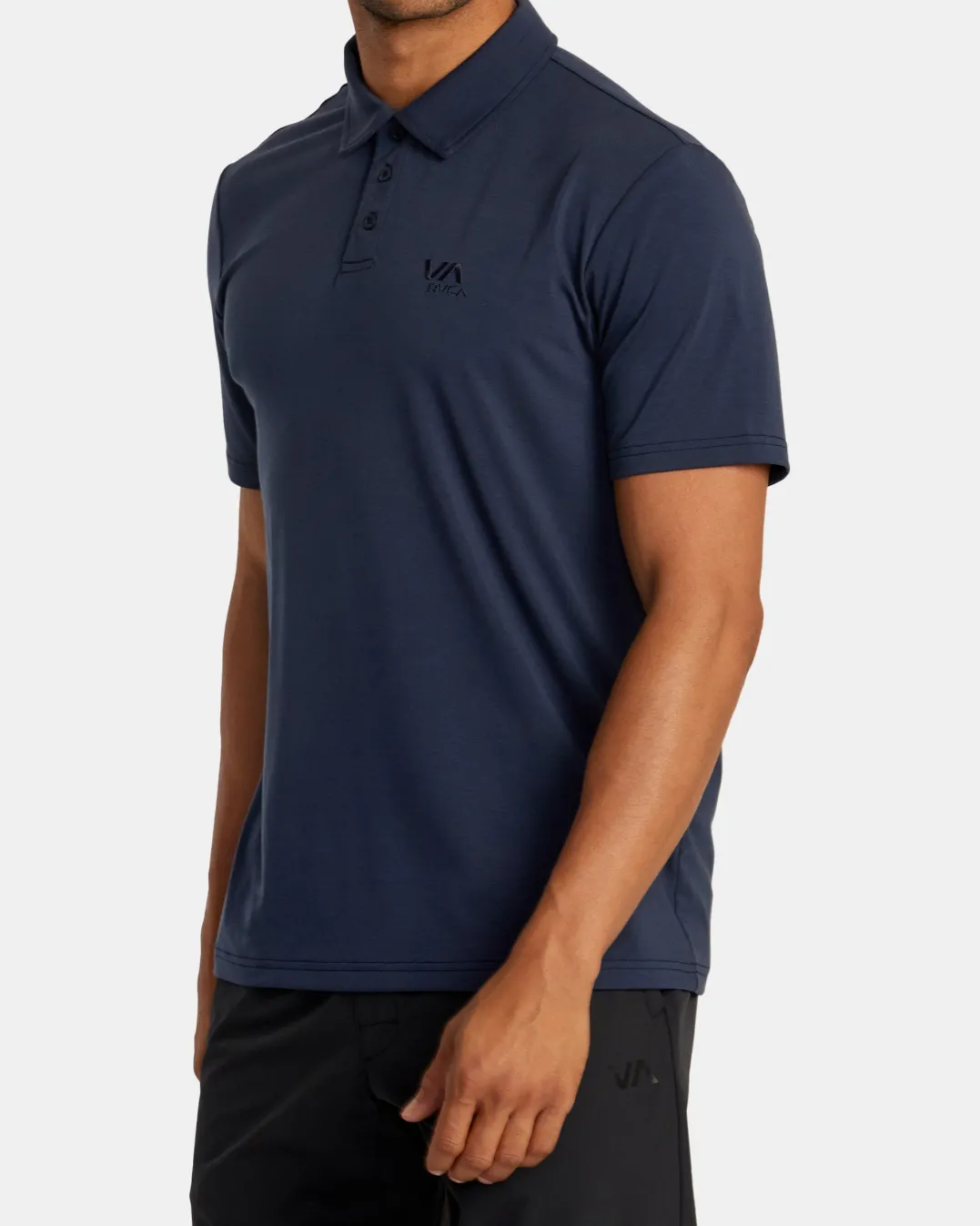 Crafted of 4-way stretch fabric for easy movement, this VA Sport Balance polo t-shirt blends performance and style with moisture-wicking properties that keep you dry and a regular fit for an easy, athletic look. Featured here in the Indigo colorway.