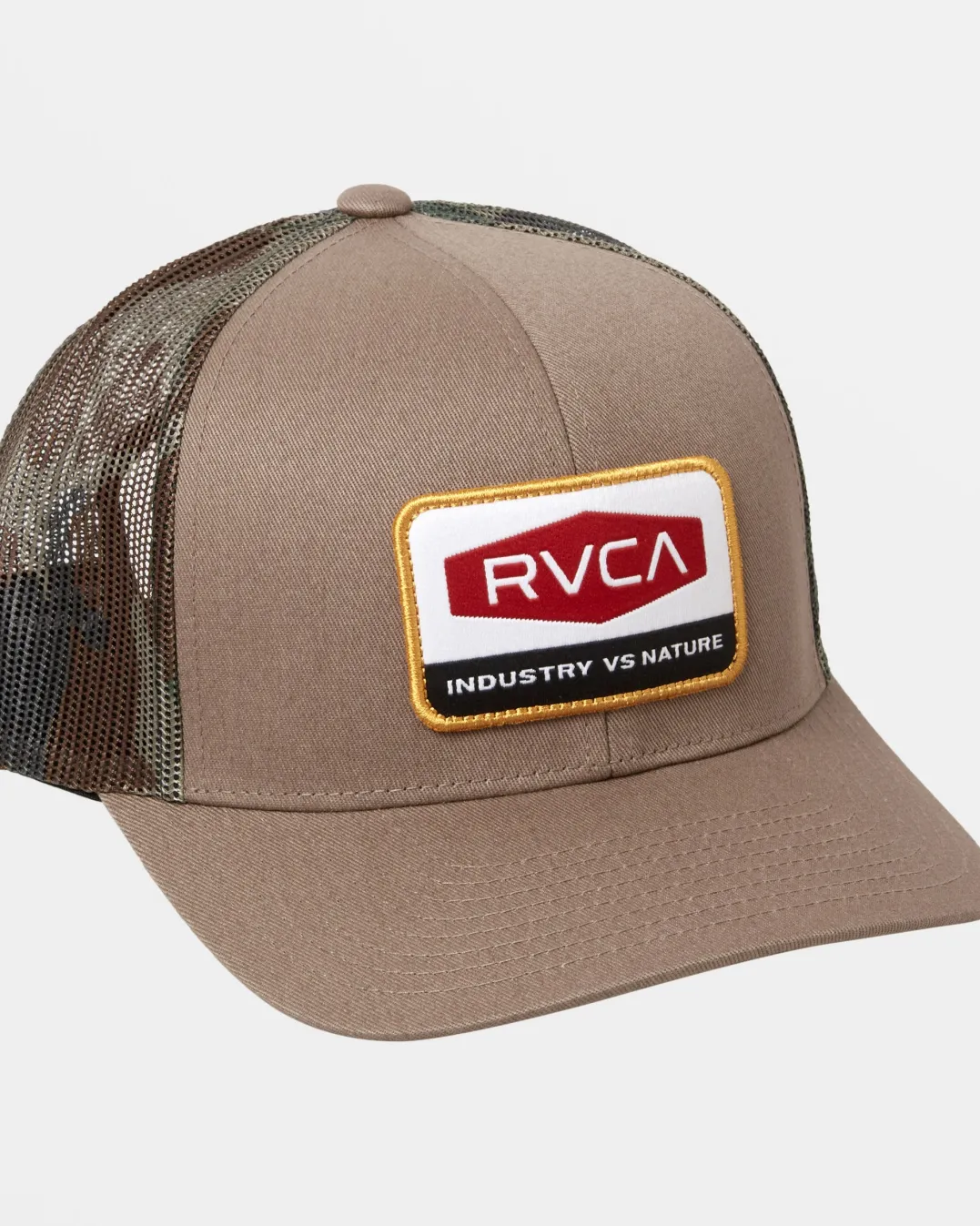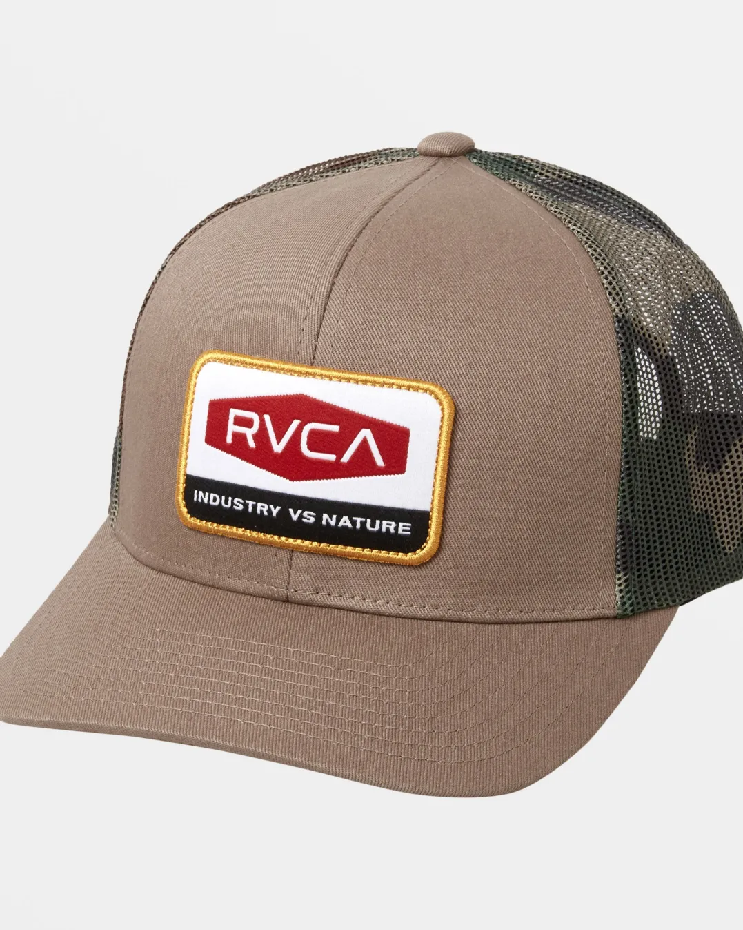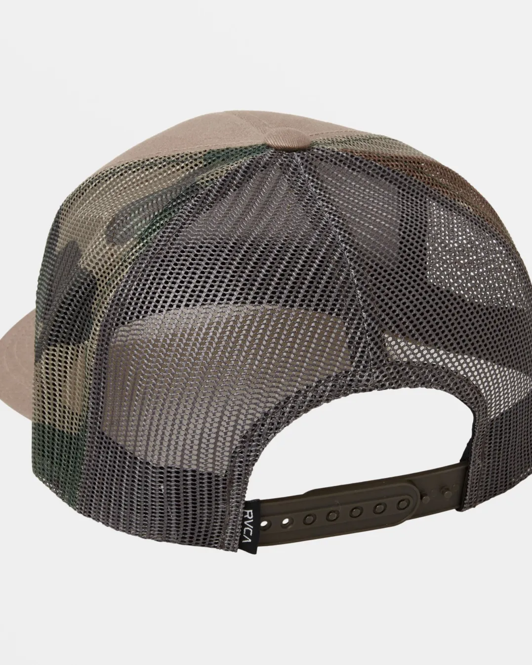 The Mission Trucker Hat is breathable, comfortable and always in style. Made from soft twill with mesh backing, an adjustable closure and curved brim. Topped with a RVCA logo patch. Featured here in the Mocha colorway.