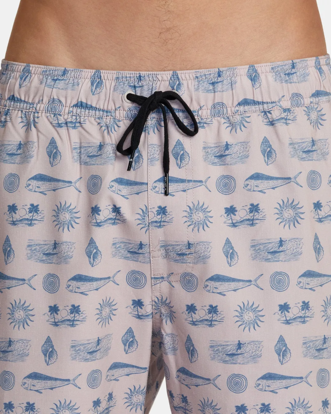 Crush the lineup with RVCA’s Dorado Elastic Waist Boardshorts. Crafted from Hemp 4-Way Stretch, these 17” printed surf trunks feature side pockets, logo patch branding, and triple-needle stitching for superior durability. Featured here in the Pale Mauve colorway.