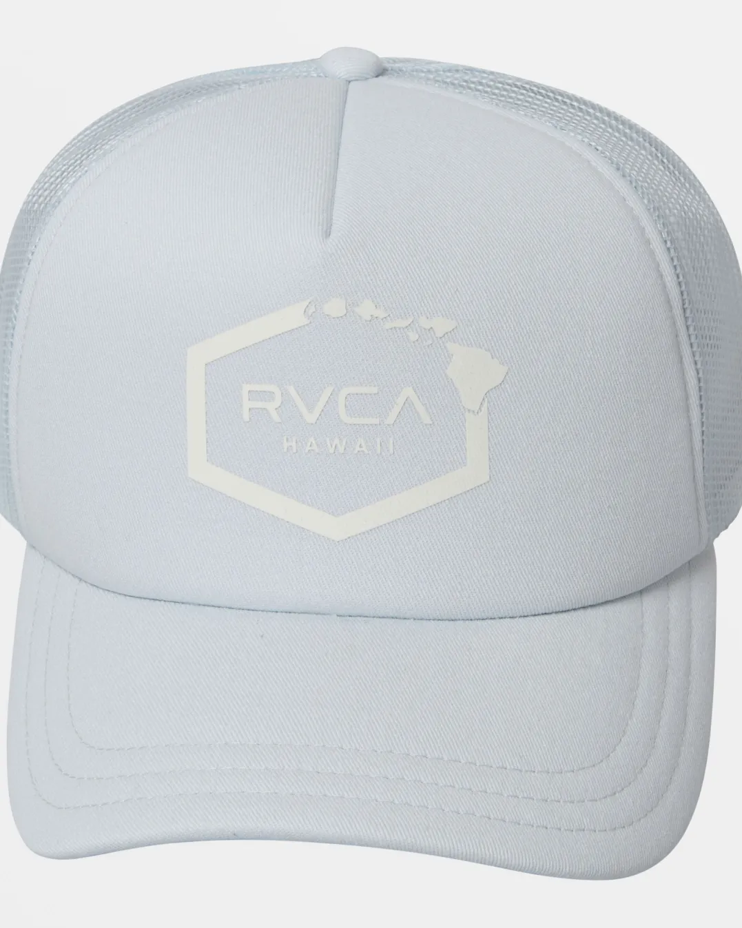 Revamp your look with RVCA’s Hawaii Hex Foam Trucker Hat. Crafted from a lightweight polyester-cotton blend fabric, this 5-panel construction hat features a slightly curved bill and snapback closure for an adjustable fit. Featured here in the Sky High colorway.