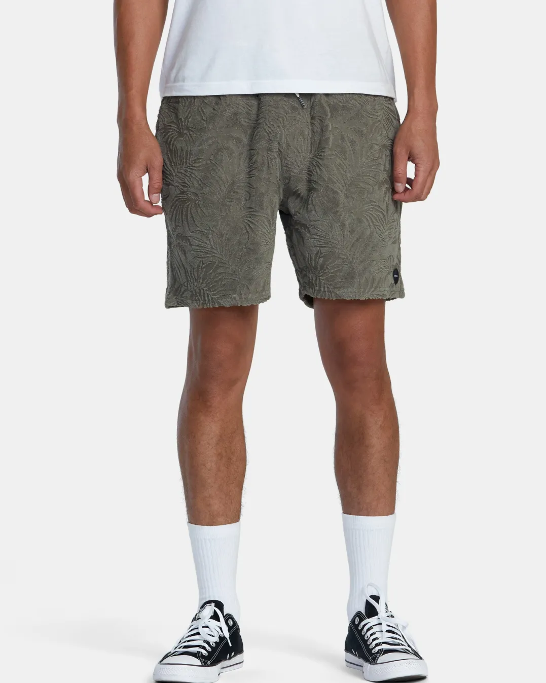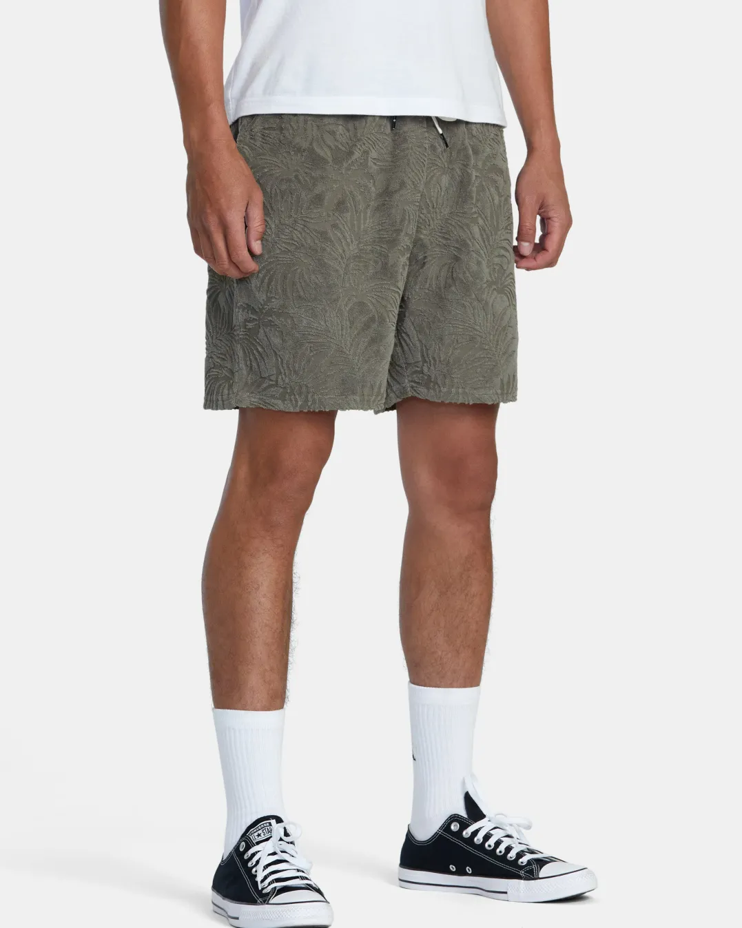Experience ultimate comfort and style with RVCA’s Palms Down 17″ Elastic Waist Shorts. Crafted from soft blended cotton fabric, these printed men’s shorts feature a heavy enzyme wash for an extra soft feel, faux fly and drawcord elastic waist. Complete with side and back pockets. Featured here in the Mushroom colorway.