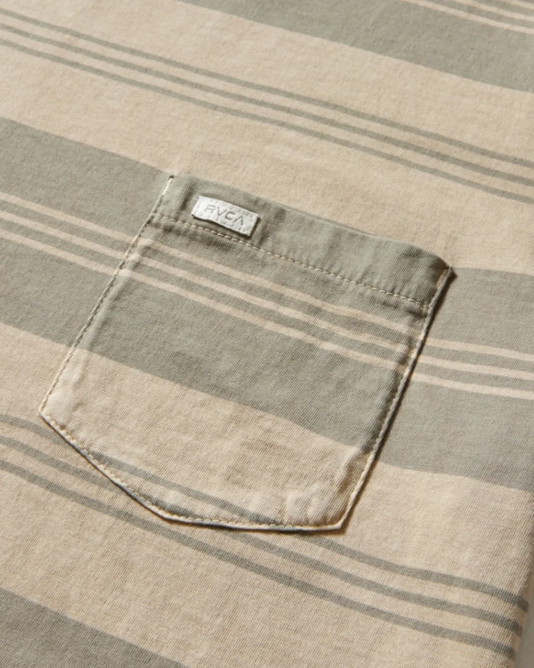 Crafted of premium cotton jersey with an incredibly soft feel and a lived-in look, the PTC Stripe Knit T-Shirt features a regular fit, logo chest embroidery, and the trademark RVCA red stitch. Featured here in the Latte colorway.