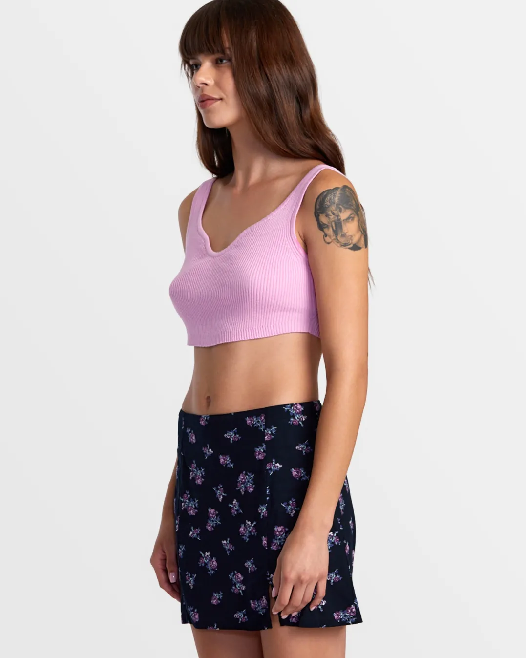 Crafted of pure cotton, the Roundabout Sweater Tank from RVCA Women’s Selects Collection adds playful details with a sweetheart neckline and asymmetrical hem. Fitted and cropped, it’s a must-have in your summer rotation. Featured here in the Pastel Lavender colorway.