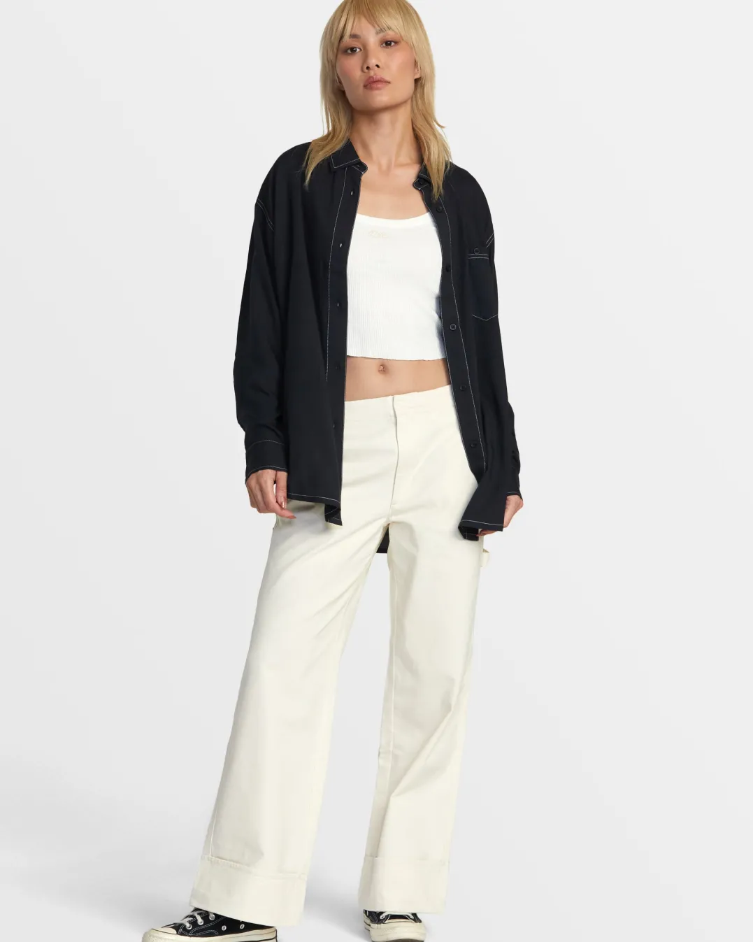 A clean and understated long-sleeve button-up that’s perfect for everyday styling. The oversized silhouette is crafted of viscose fabric that’s soft and lightweight, perfect for a lightweight layer.