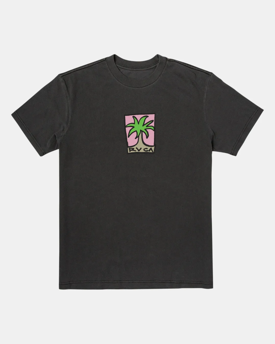 Crafted of soft cotton and cut in a slightly shorter length for a vintage look, RVCA’s Small Palm T-Shirt features a mini puff-ink graphic at the chest. Featured here in the Black colorway.
