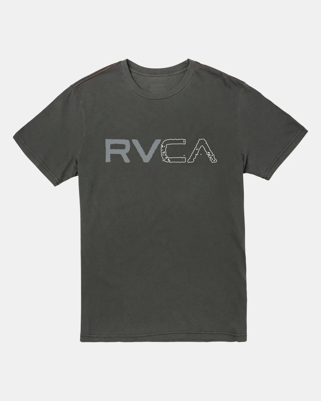 A slim-fit tee made from breathable cotton jersey, perfect for day trips or casual weekends. The crew neck and short sleeves keep it simple while the RVCA logo graphics add signature style. Featured here in the Pirate Black colorway.
