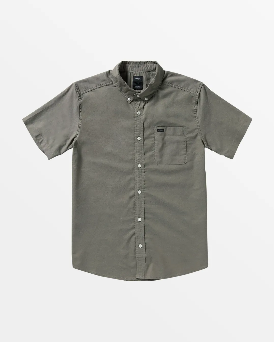 The RVCA That’ll Do shirt puts style and comfort in the game with a slim fit, stretch cotton blend, button down collar, and scalloped hem.