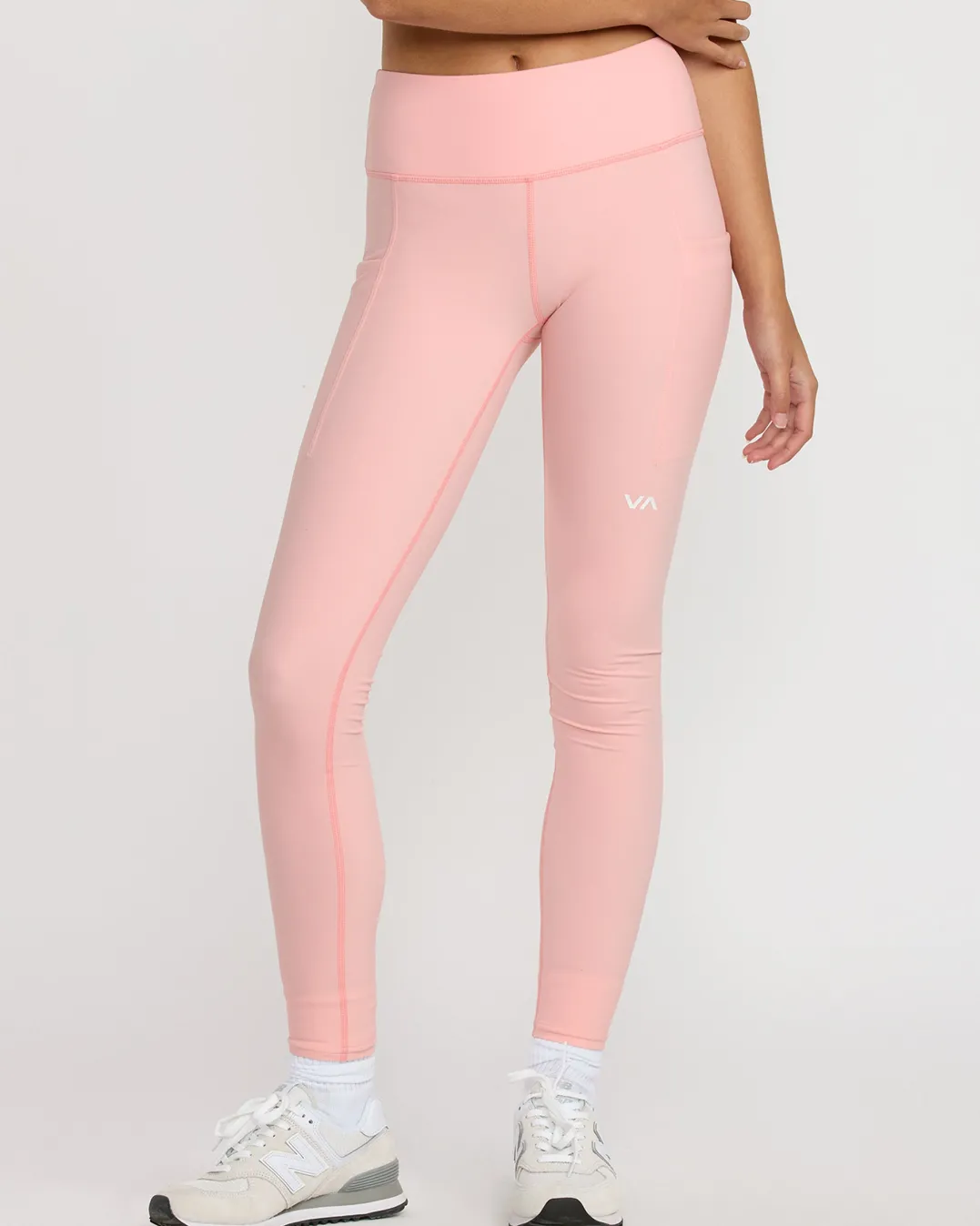 Reach your fitness goals with the VA Essential Pocket Legging II Pants from RVCA’s VA Sport Women’s Collection. Crafted in high-performance fabric with moisture-wicking properties, these high-waisted sport leggings feature flattering seaming details for a stylish look and on-seam media pockets for added convenience while you move. Featured here in the Peach Kiss colorway.