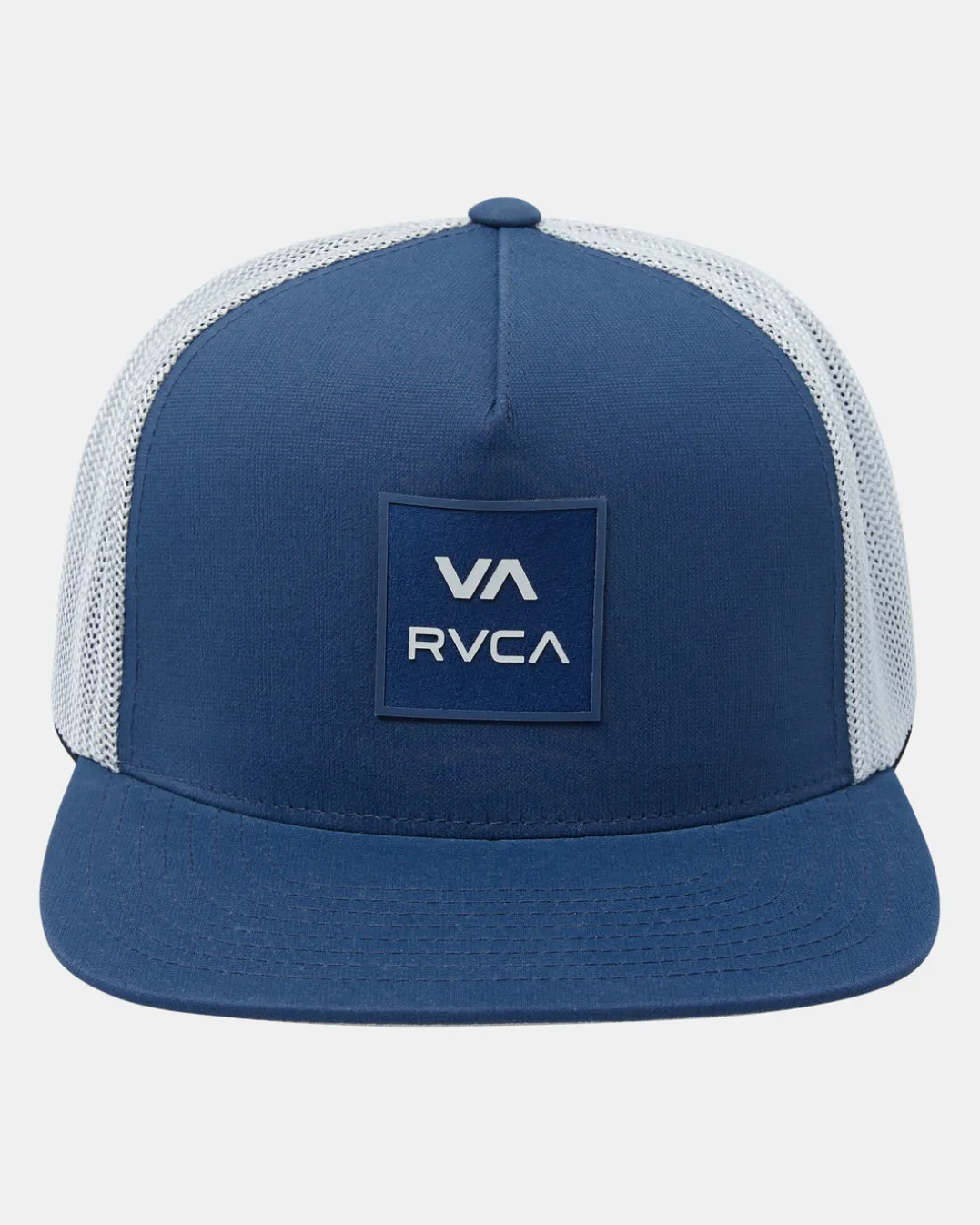 The RVCA All The Way Tech Trucker Hat combines coverage and breathable comfort in one. Made from poly stretch fabric with a structured front panel, this men’s trucker hat features a moisture-wicking sweatband, 5-panel construction, mesh backing, snapback closure and RVCA VA logo embroidery. Featured here in the Slate colorway.