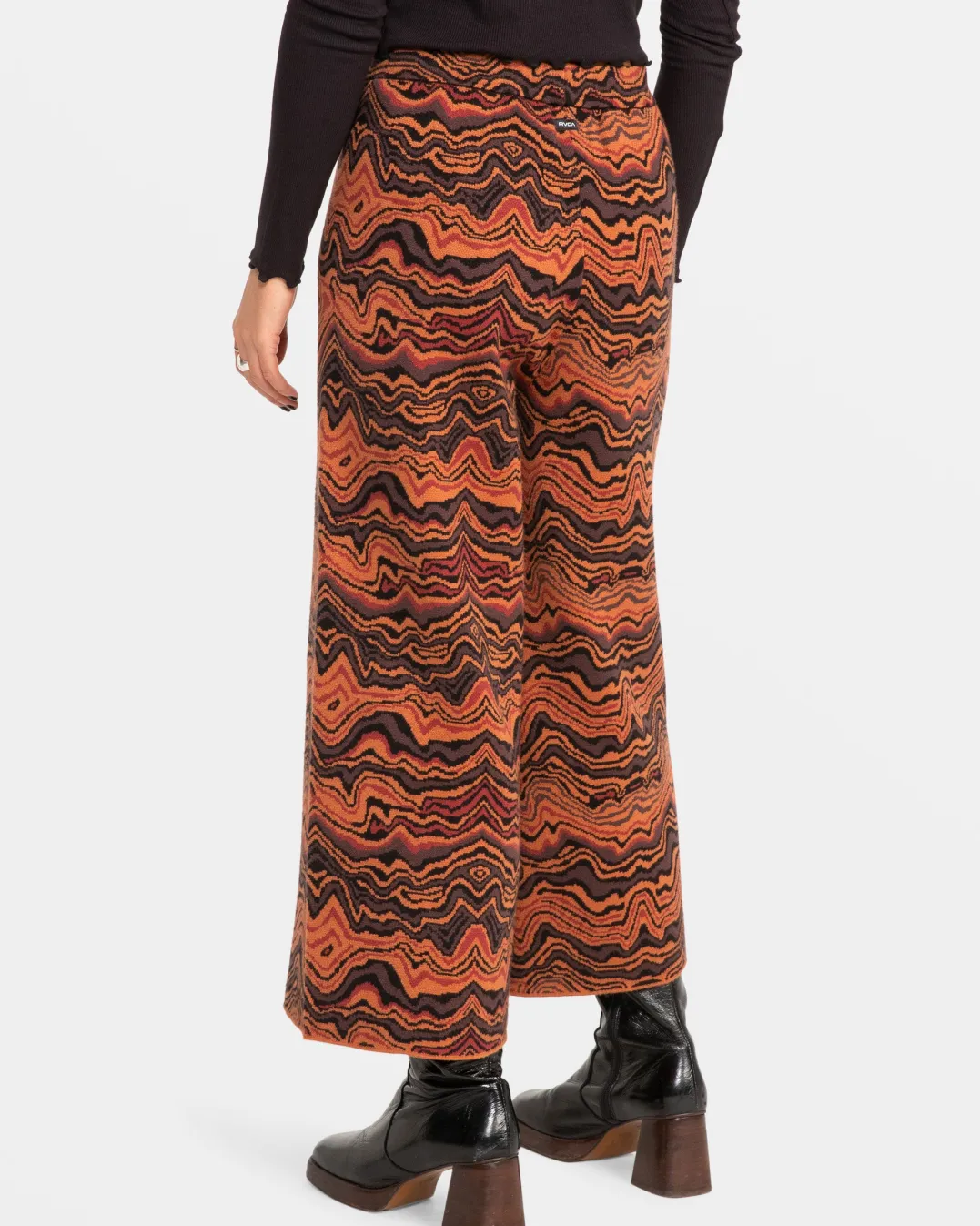 Cozy comfort takes a bold edge in the Apres pants, featuring a vibrant print on blended sweater fabric. Complete with an elastic waist and wide leg silhouette.