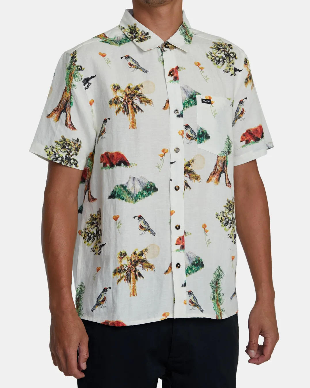 Step out in style with RVCA’s Artifacts Short Sleeve Woven Shirt. Crafted from a lightweight linen-viscose blend fabric in a slightly relaxed fit for easy wear, this printed button-up shirt features a traditional collar neck, a single chest pocket, and a scalloped hem for an elevated look. Featured here in the Vanilla colorway.