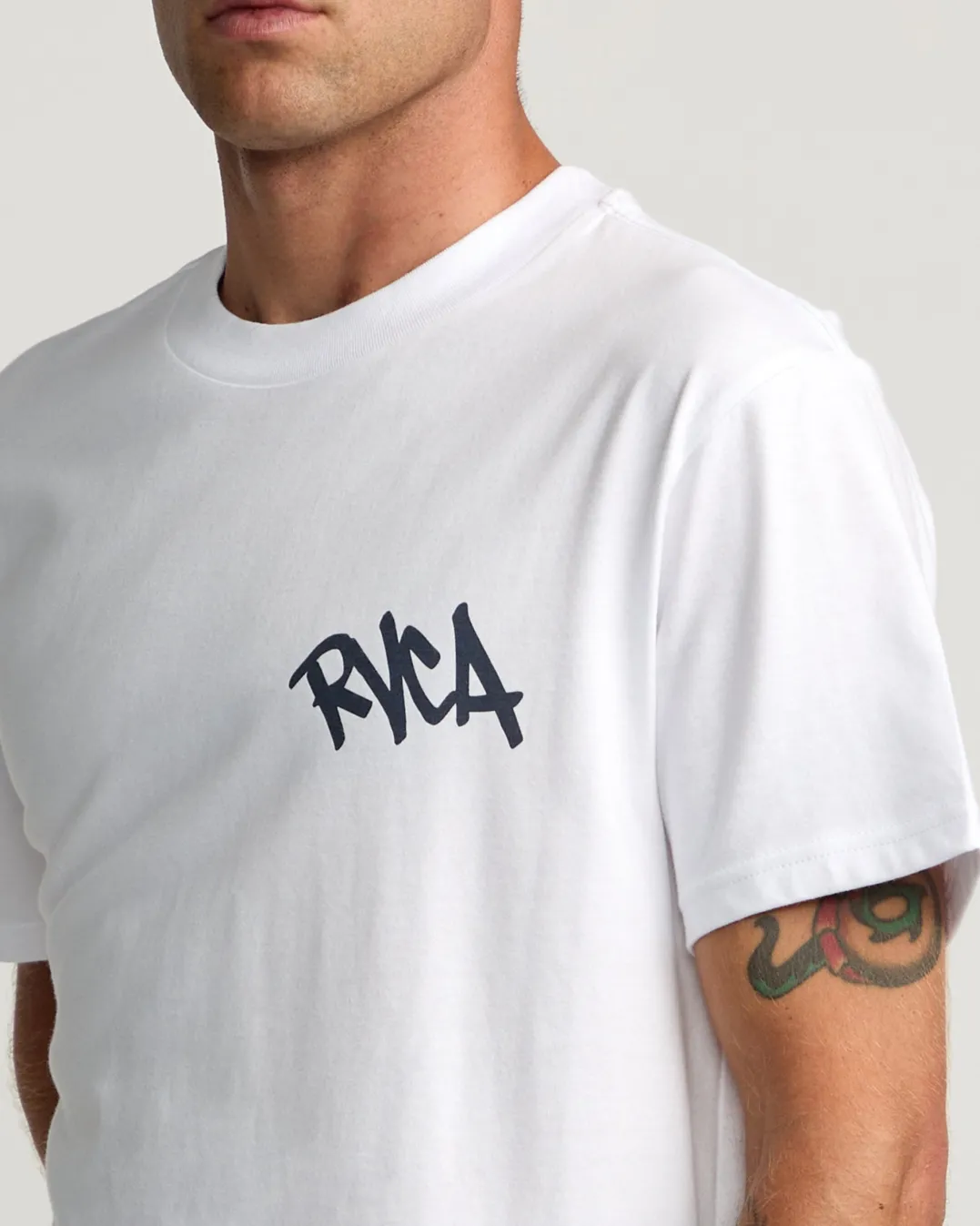 Crafted of organic cotton with a quality, mid-weight feel, this RVCA crewneck tee features special edition artwork by ANP artists Stash X Bedwin. Featured here in the White colorway.