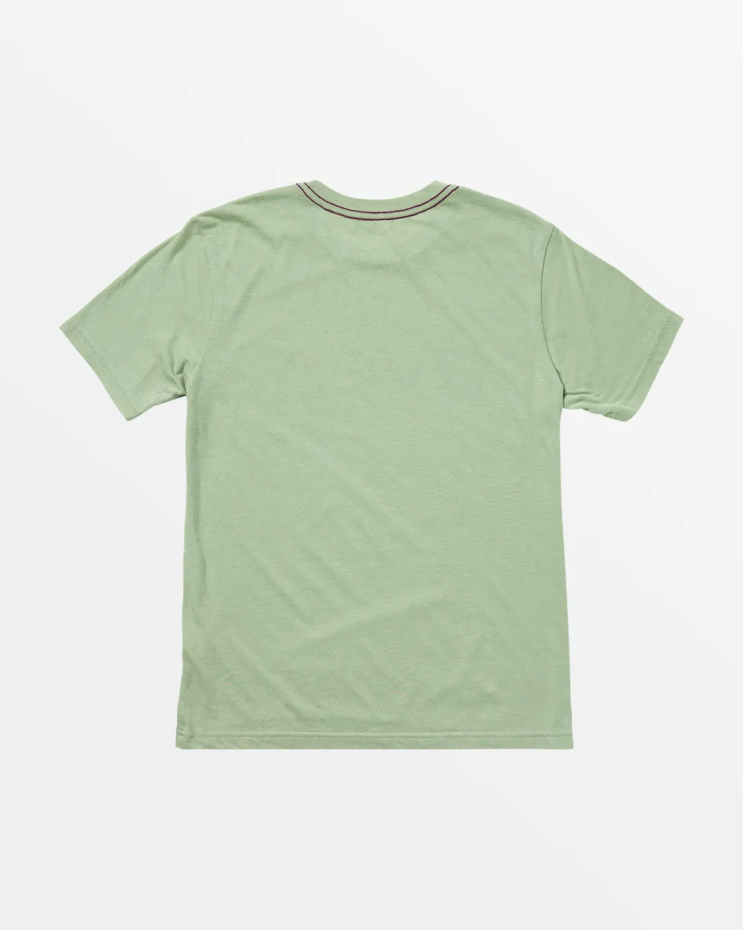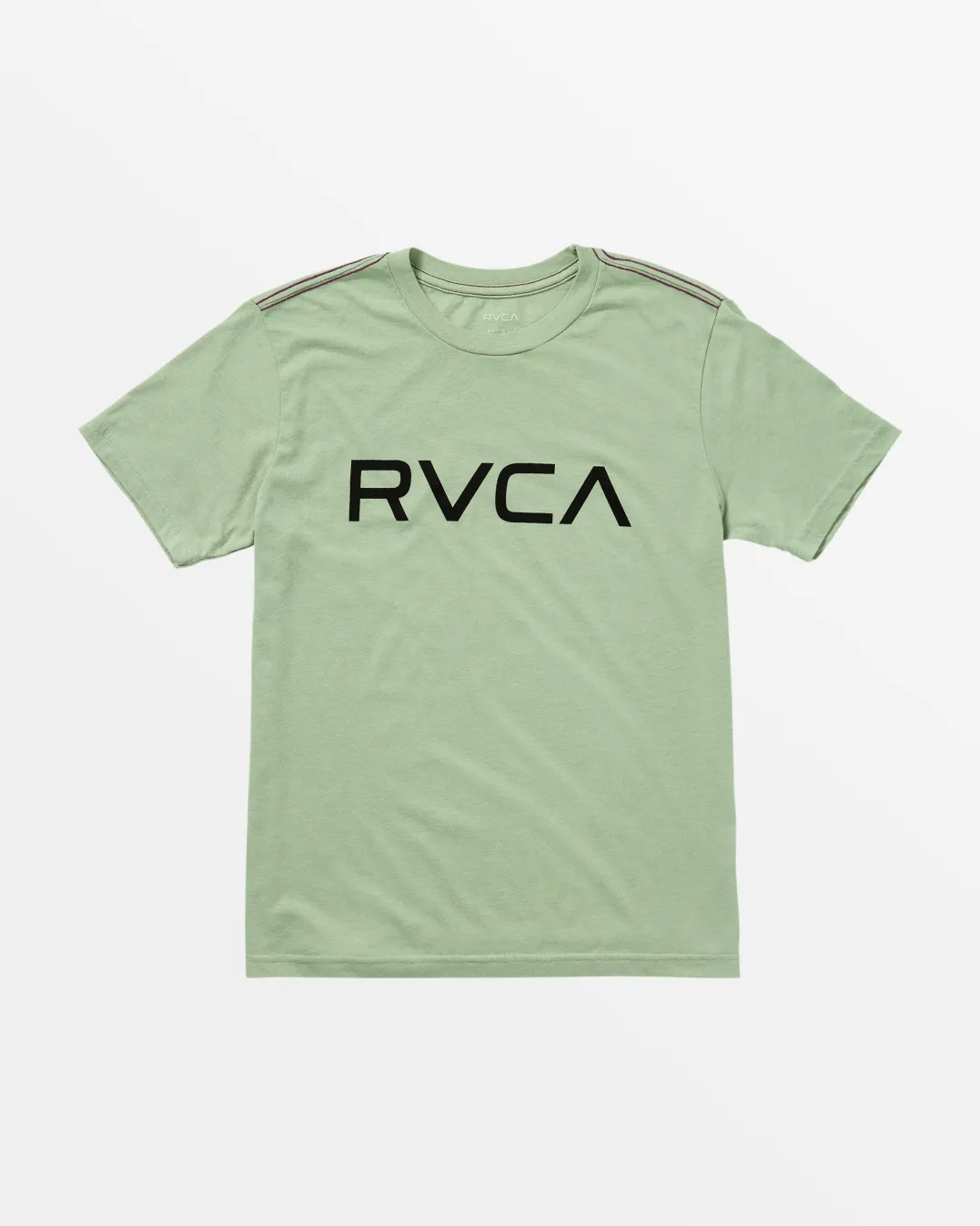 Let boys be boys in this comfy Big RVCA t-shirt. Made from a cotton-poly blend, the vintage dye and red stitching show subtle style without flash. The crew neck, standard length and slim fit make it easy for kids toss on and go. Featured here in the Granite Green colorway.