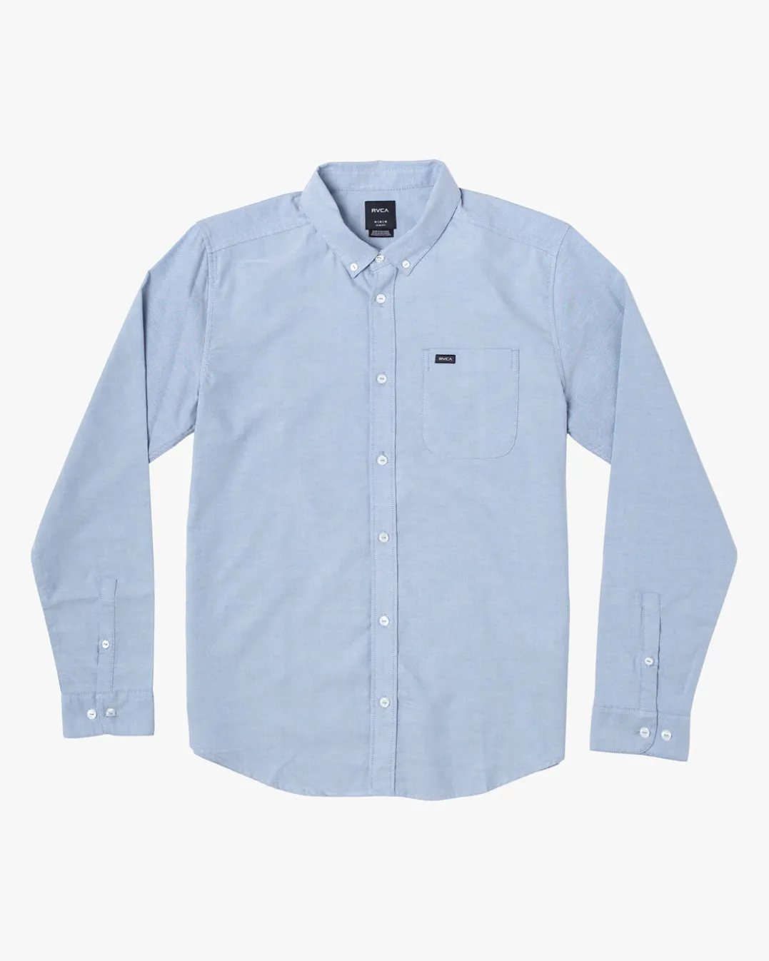 The RVCA That’ll Do button-down long-sleeve shirt for boys features a slim fit, collar neck, single chest pocket with brand label, and stretchy cotton blend fabric that will have him ready for the school day or weekend adventures ahead.
