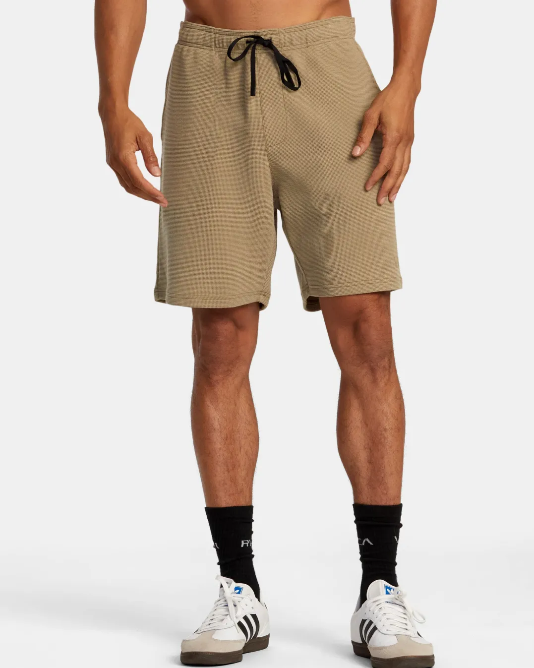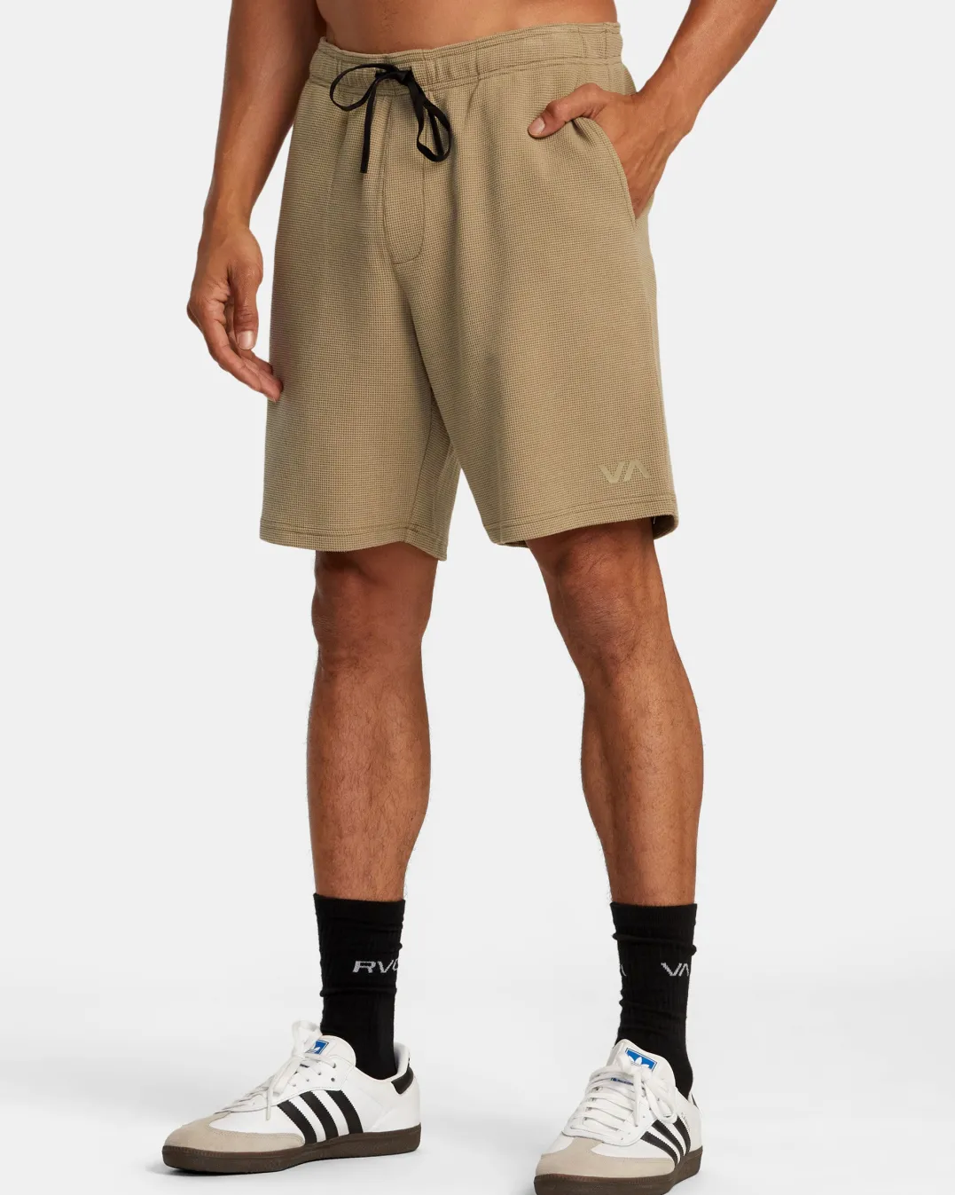 Hit the gym or the streets in RVCA’s C-Able Waffle Knit Shorts, a crossover style made to wear anywhere. Crafted of technical knit in a seamless design, these shorts feature an elastic waist, drawcord closure, side pockets, and a back pocket for convenience. Featured here in the Dark Khaki colorway.