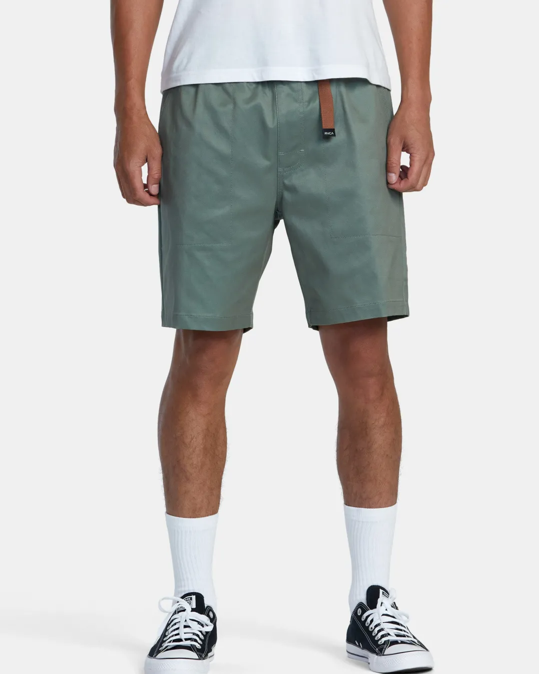 Made of cotton-nylon blended fabric with a slight stretch, these 18′ hybrid boardshorts feature an elastic belted waistband and pockets. Available in a range of prints and colorways. Featured here in the Olivine colorway.