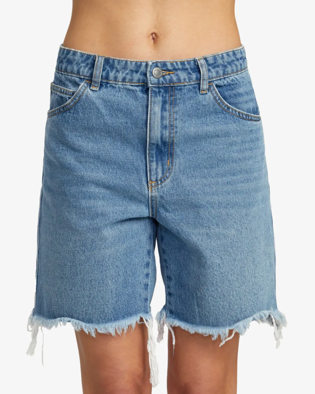 Experience the perfect combination of style and comfort with RVCA Women’s Crawford Long Short Denim Shorts. Crafted from pure cotton denim, these long-line shorts have a regular fit throughout with a mid-rise waist, a zip fly, and button closure. A vintage wash, VA stitching, and a raw edge hem add a perfectly well-worn look. Featured here in the 90S Blue colorway.