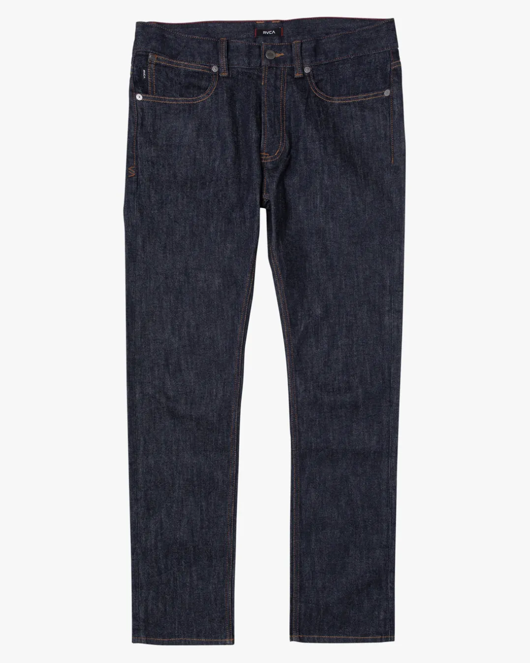 Heritage design meets modern comfort in the RVCA Daggers Denim Jeans. Made from soft cotton stretch, this mid-weight denim jeans feature a slim fit, with a front button tack and metal zipper closure, pockets throughout and RVCA logo branding. Featured here in the Dark Indigo colorway.