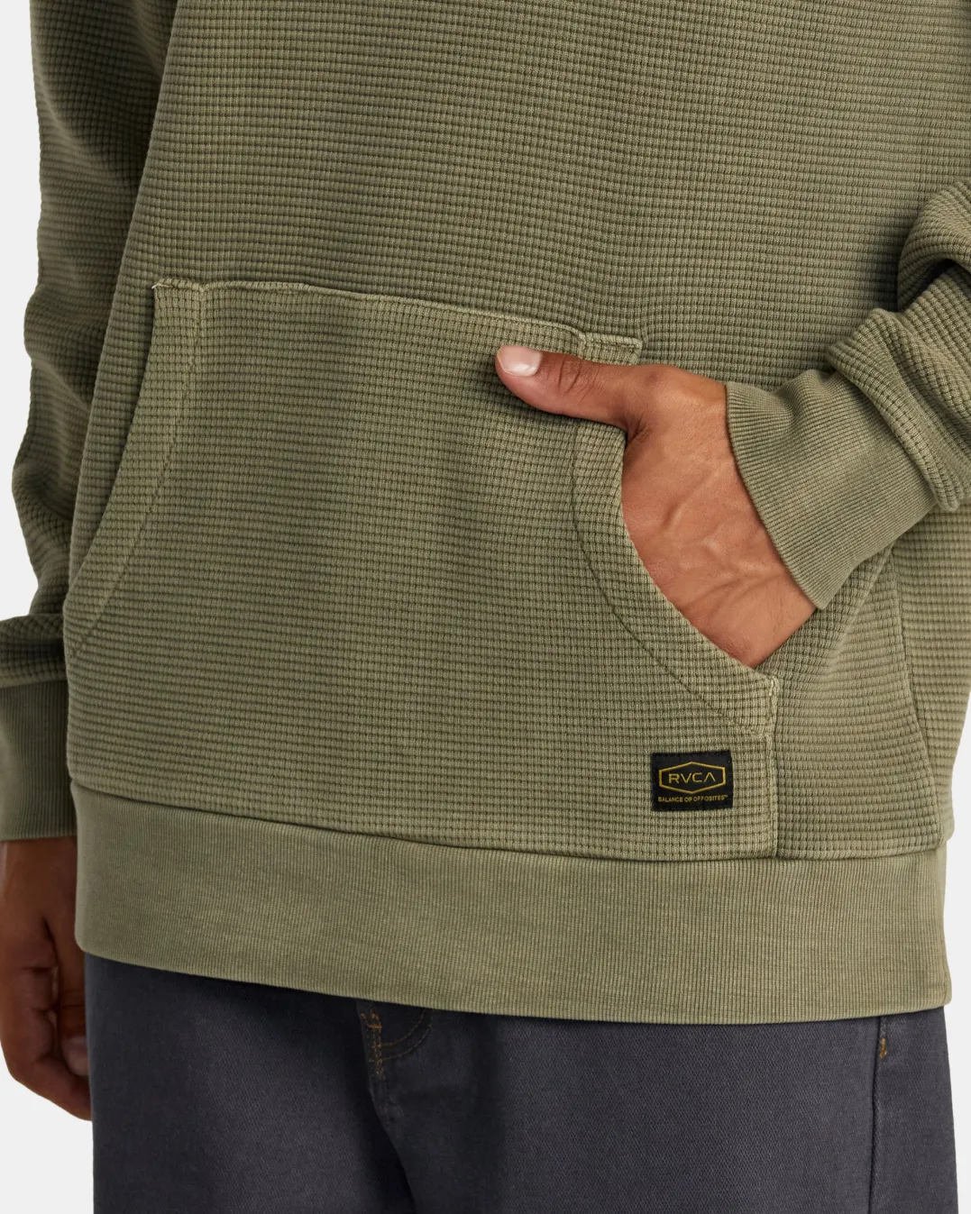 A cozy pullover with a clean and timeless aesthetic, the Dayshift Collection heavyweight fleece hoodie offers a convenient kangaroo pocket, long sleeves and ribbed cuffs. The relaxed fit and RVCA patch branding add easy style for lounging. Featured here in the Olive colorway.