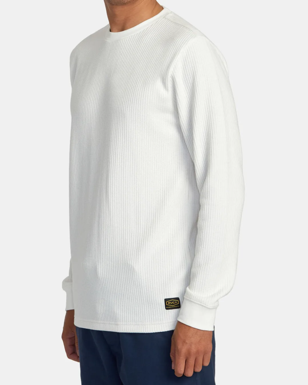 Designed to layer around the clock, the RVCA Dayshift Long Sleeve Thermal Tee brings a premium feel to the cold season essential. Made from a soft, blended waffle knit, the slightly fitted men’s long sleeve t-shirt keeps a classic cut with a rounded hem, adding a woven label to the left hem.Modern takes on timeless workwear silhouettes, the Dayshift Collection combines clean and understated design with durable fabrications to create the perfect no-frills staples for all. Featured here in the Off White colorway.