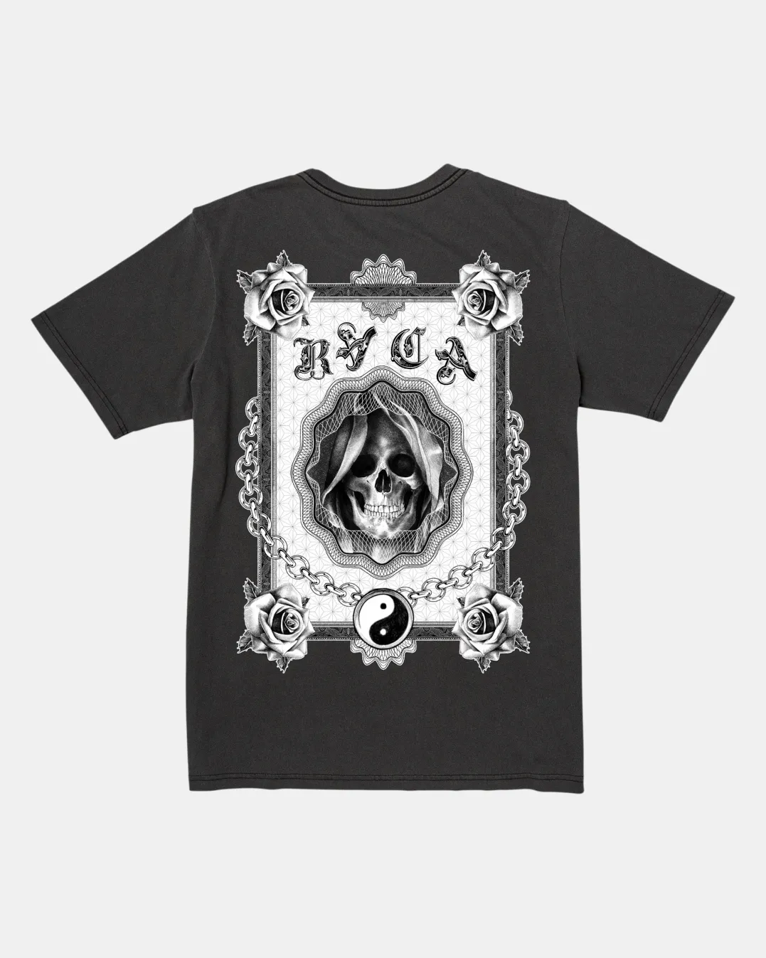 Featuring a custom graphic design by ANP artist Benjamin Jean Jean, RVCA’s Dream Reaper T-Shirt is crafted of soft cotton and cut in a slightly shorter length for a vintage look. Featured here in the Black colorway.