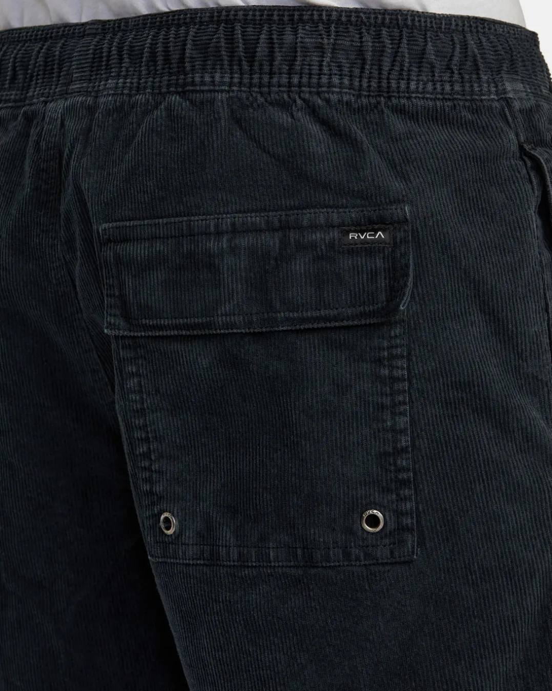The RVCA Escape Elastic Waist Corduroy Shorts 17″ combine heritage lines with modern fabrics for a bold look. These men’s cotton walk shorts are washed in a heavy enzyme treatment for a faded, worn-in look and feel. Designed in a relaxed fit, with a comfortable Elastic Waist and pockets throughout. Featured here in the Black colorway.