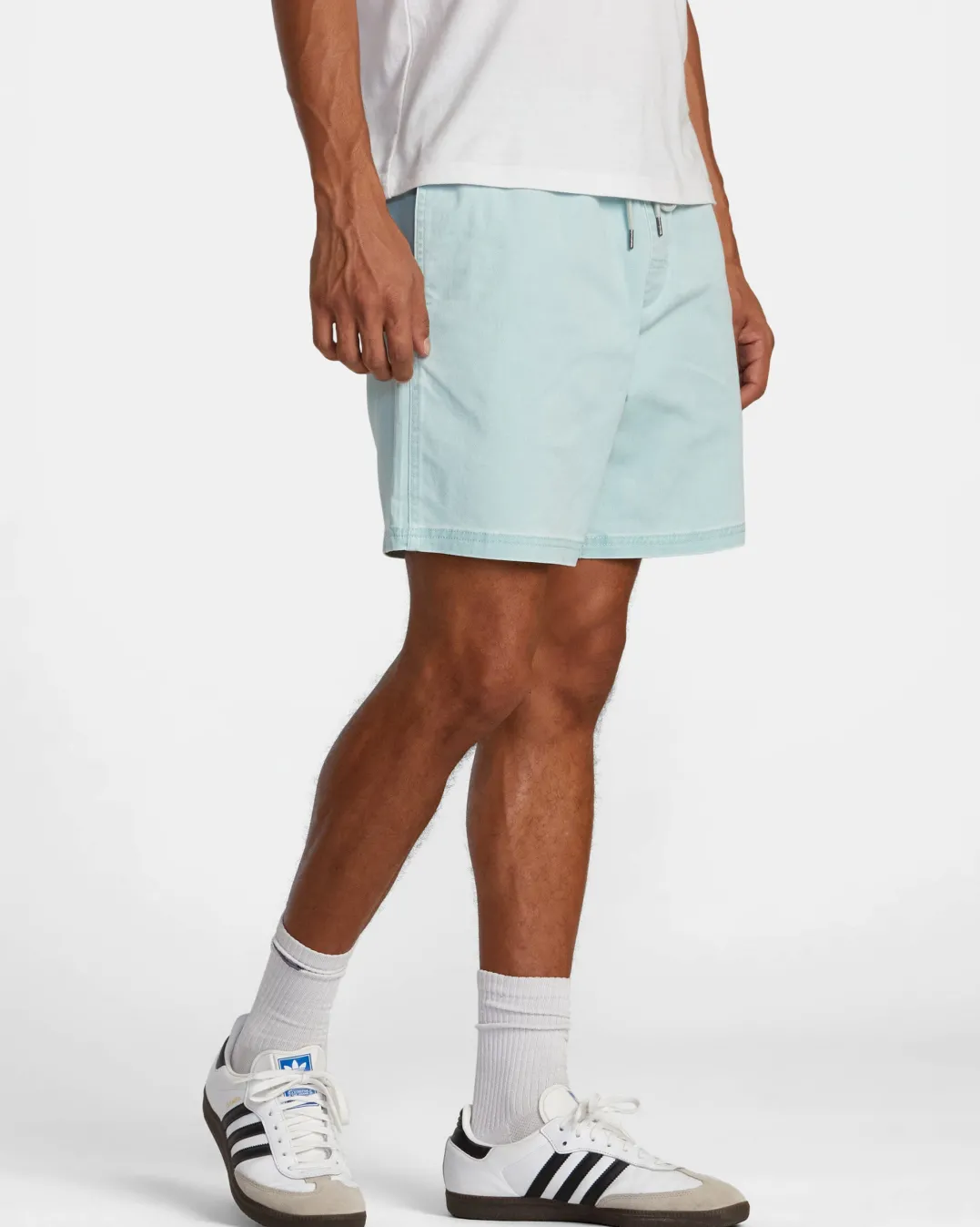 A solid short that won’t hold you back, the RVCA Escape Elastic Waist Short features a comfort-driven design with functional stretch. A solid Elastic Waist short, the Escape keeps to utilitarian lines with a drawcord a the waist, side seam pockets, and a back pocket with a RVCA woven label. A heavy enzyme wash offers the short a broken-in look and feel. Featured here in the Blue Haze colorway.