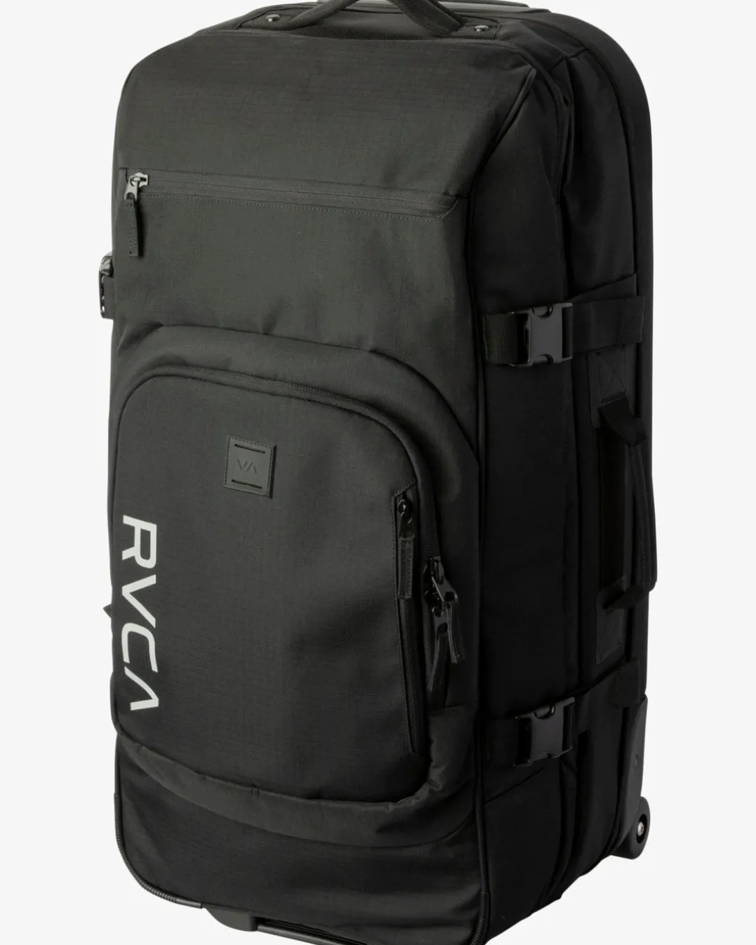 Get outside and explore with RVCA’s Global Large Roller Bag, featuring tear-proof polyester fabric, two main interior compartments, lockable exterior zippers, and a reinforced bottom platform to protect your goods. Featured here in the RVCA Black colorway.