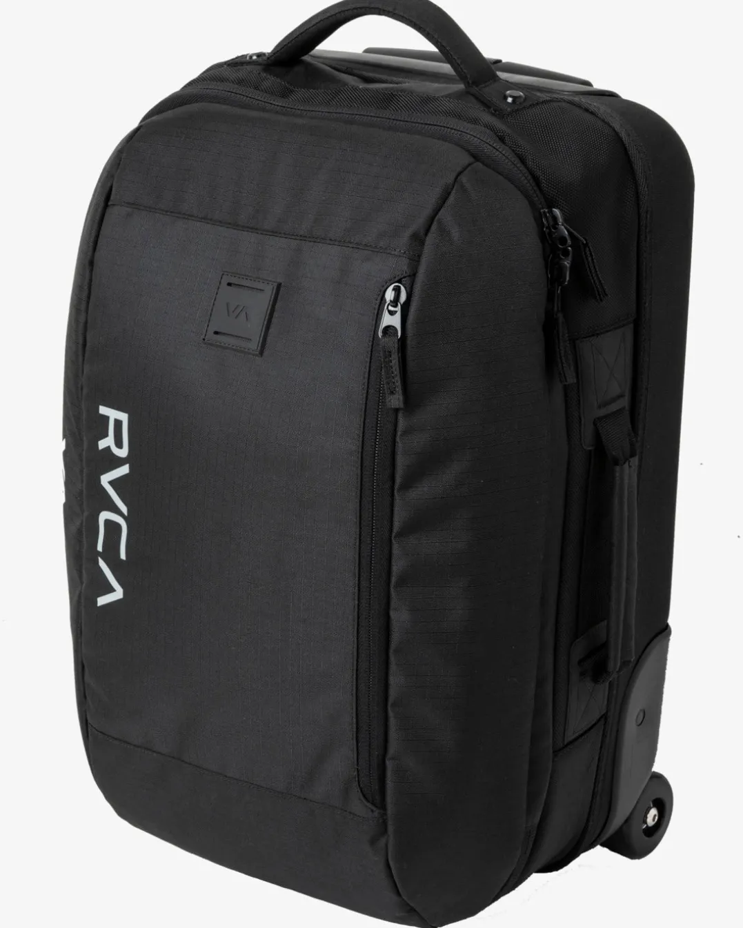 Elevate your travel experience with RVCA’s Global Small Roller Bag, featuring tear-proof polyester fabric, two main compartments with internal mesh organizers, a single front zipper compartment, lockable exterior zippers, and internal compression straps to maximize your travel. Featured here in the RVCA Black colorway.