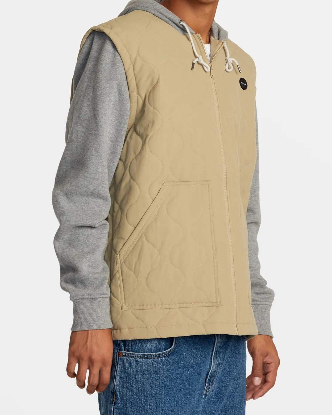 Innovative design meets ultimate comfort in the RVCA Grant Puffer Jacket, featuring contrast fabric at the hood, sleeves and body for a bold look throughout. Made from quilted woven nylon with Poly-fil and knit jersey for a soft, insulated feel, this men’s hooded jacket features a zip front closure, ribbed cuffs and adjustable drawcord for added protection from the elements. Finished off with self fabric patch pockets and our custom mini RVCA motors patch at the left chest for vibes. Featured here in the Khaki colorway.