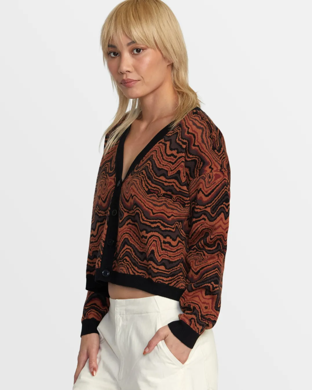 This isn’t your grandpa’s cardigan — RVCA Women’s Happy Hour Cardigan has a boxy shape and a relaxed fit, made with cozy cotton knit in a range of bold prints. Featured here in the Black colorway.