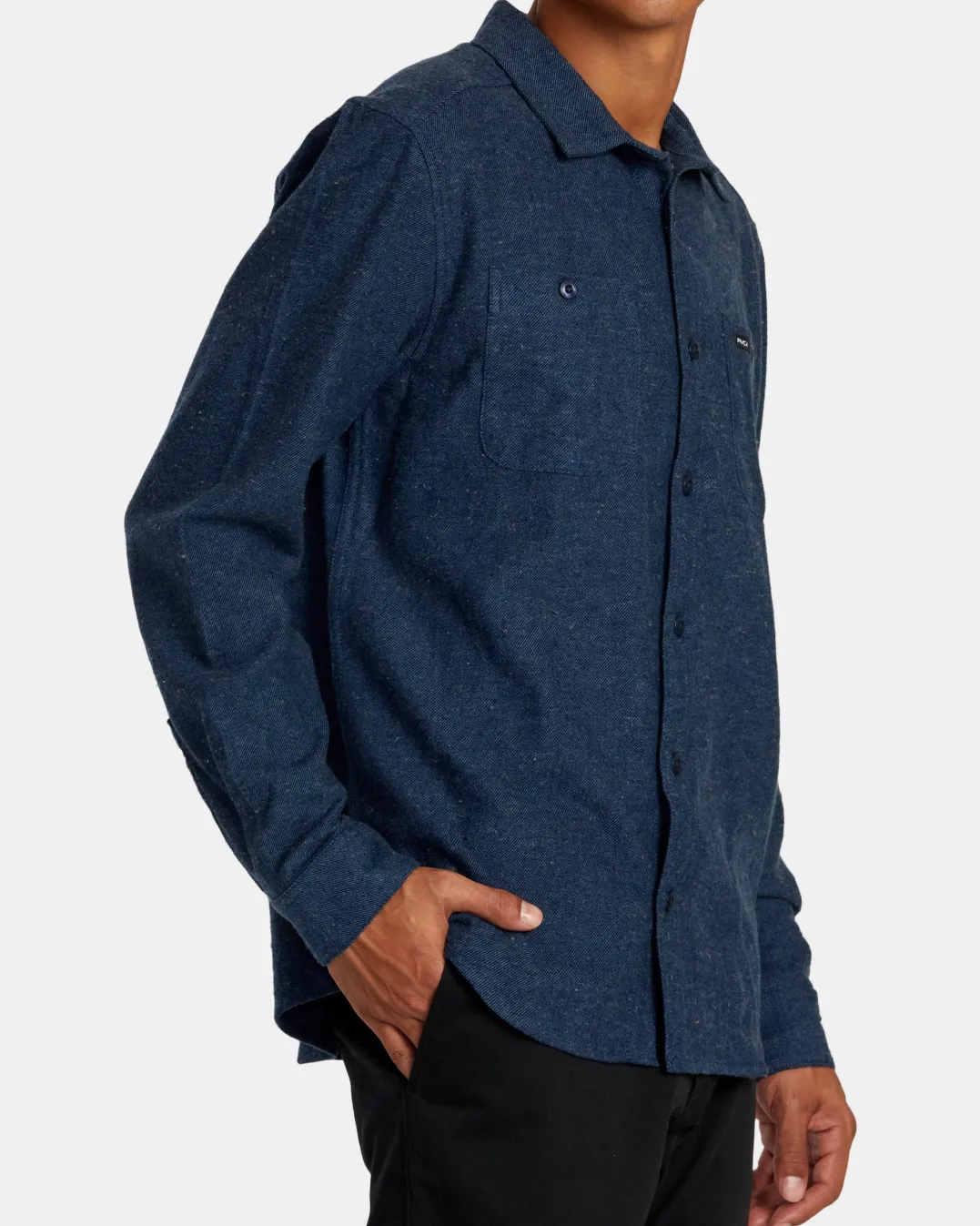 The RVCA Harvest Neps Flannel Shirt combines ultimate comfort and easy style in one. Made from soft cotton flannel, this men’s button-down features a traditional collar, long sleeves, adjustable cuffs, scalloped hem, double chest pockets and woven RVCA branding. Featured here in the Dark Denim colorway.