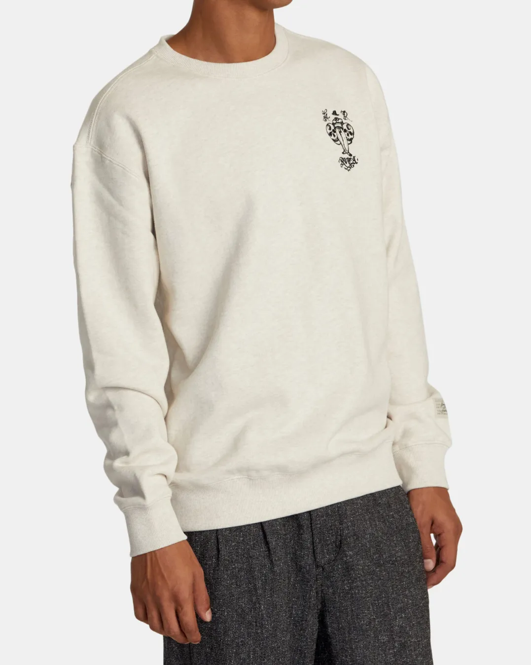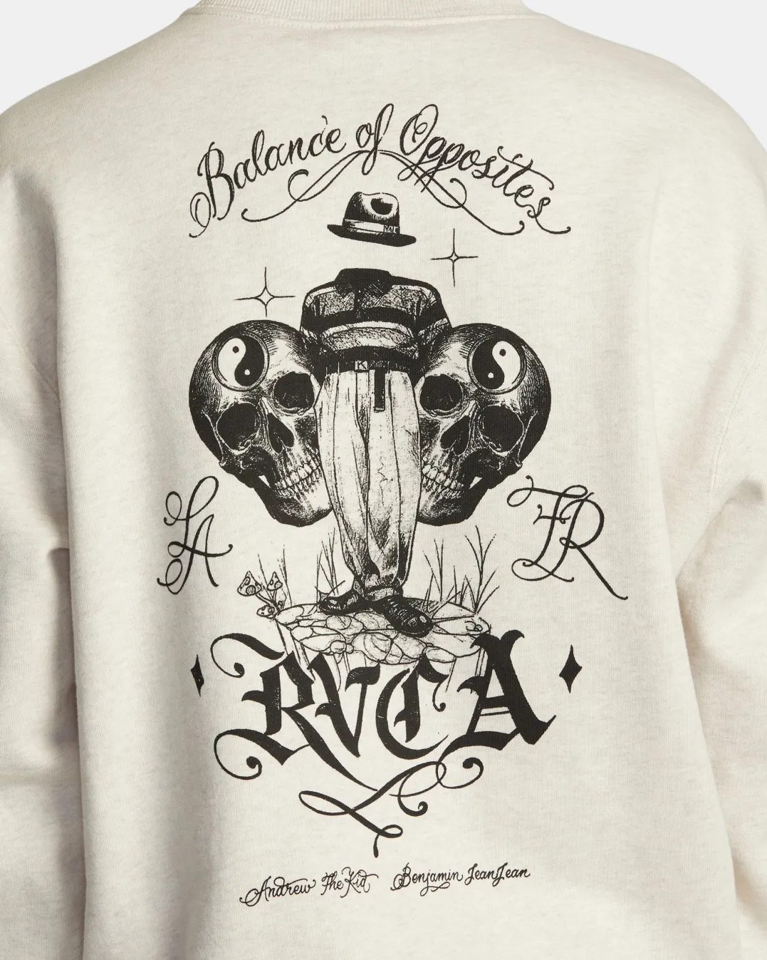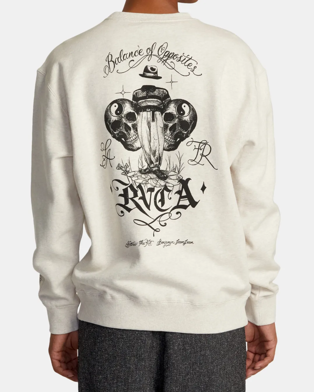 Crafted of comfy blended cotton, the Invisible Man crewneck from RVCA’s Benjamin Jeanjean x Andrew The Kid ANP collaboration features custom art graphics and quality details like ribbed cuffs and woven labels.