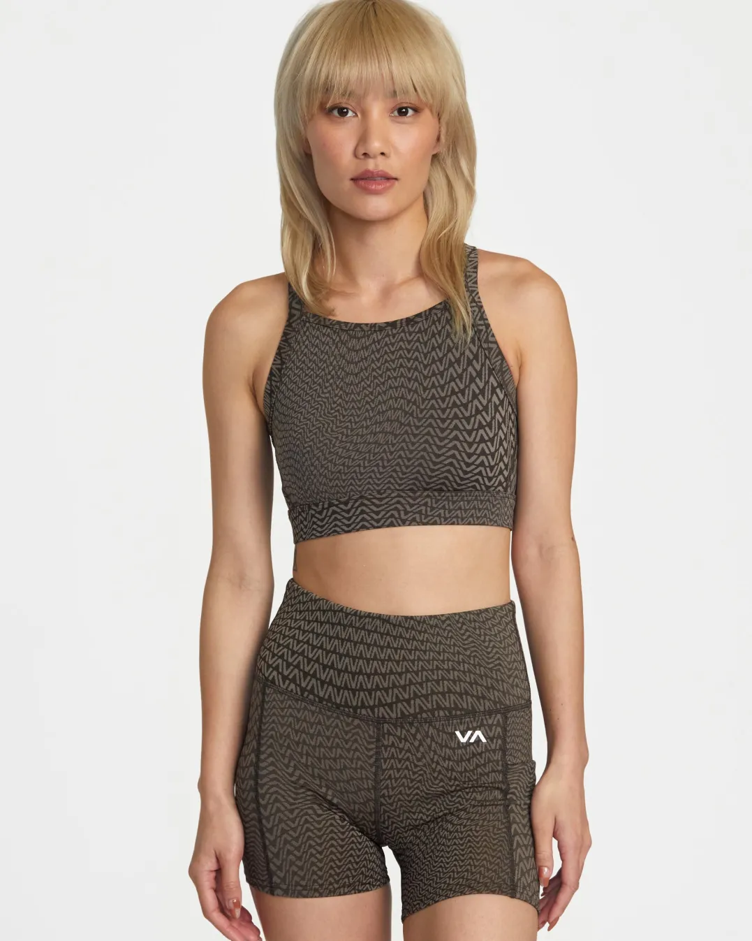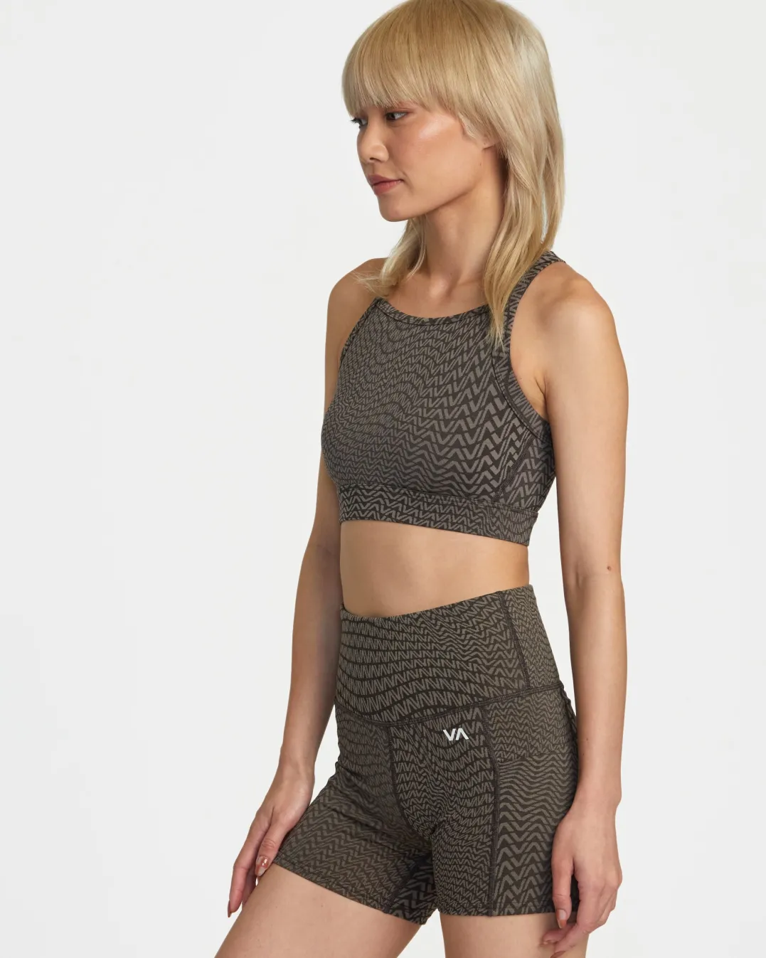 This high-impact sport bra from RVCA features a fitted silhouette with a high crew neck, hook-and-eye back closure and adjustable straps, keeping you supported during tough workouts. The nylon-elastane blend fabric wicks moisture and hugs your body to help you power through burpees and lunges with comfort.