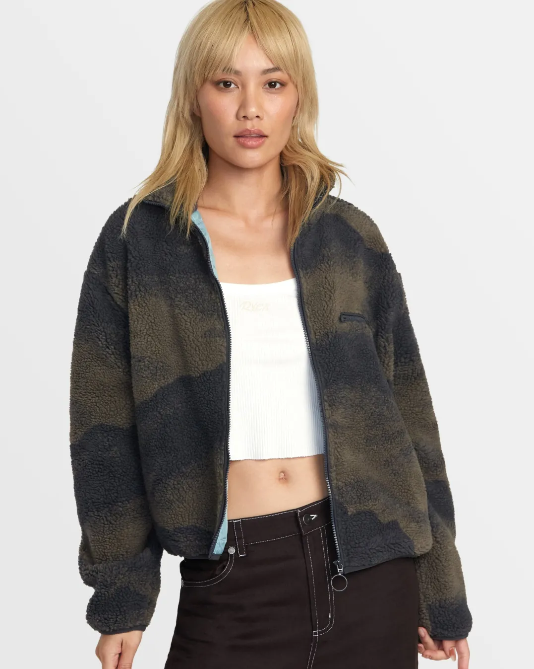 The Oh Hush sherpa jacket offers effortless warmth and style. Crafted from plush polyester fabric, it features a mock neck, long sleeves and a full zip closure to seal out chilly winds.
