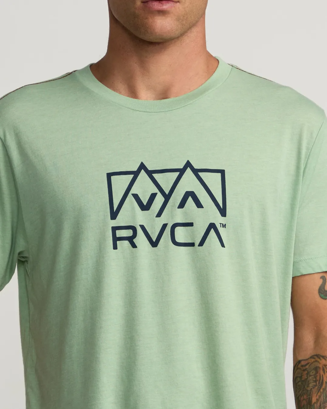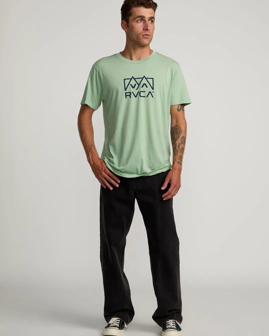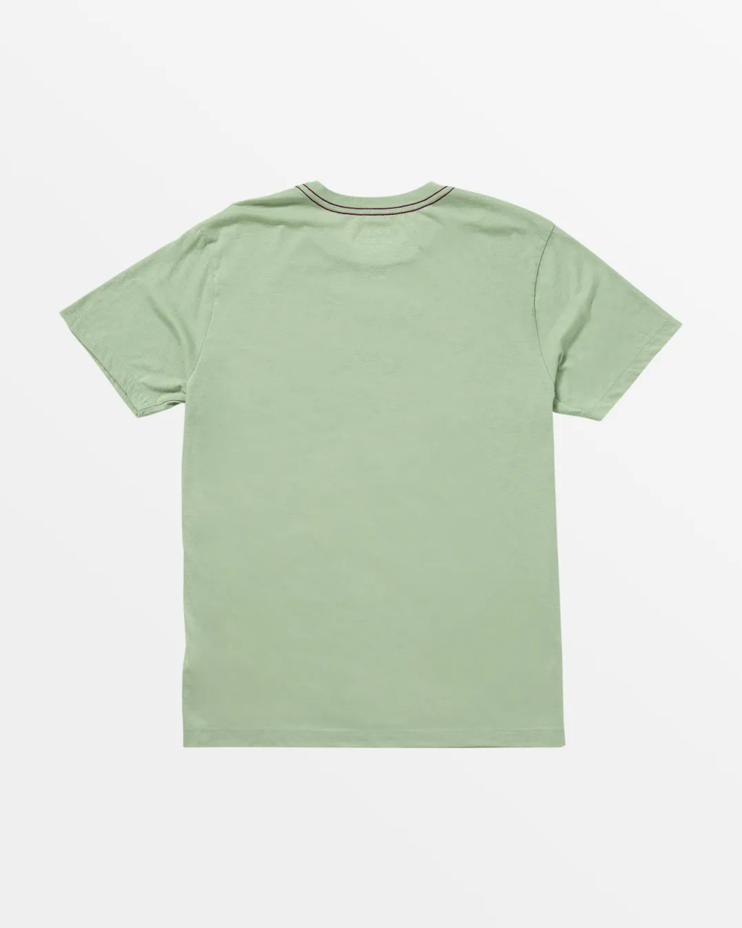 This vintage-washed cotton-poly tee boasts a slim fit and crew neck for an essential look that never goes out of style. Red stitching and a subtle front screen print add signature RVCA style. Featured here in the Granite Green colorway.