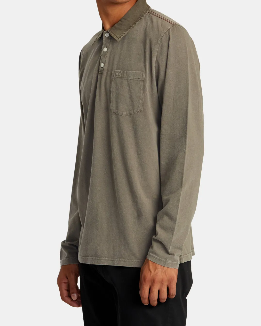 Classic style with modern comfort. The collar neck, long sleeves, button placket and chest pocket evoke the heritage of the polo shirt, while the breathable cotton fabric ensures all-day ease. Featured here in the Mushroom colorway.
