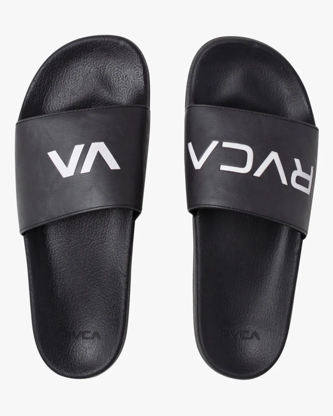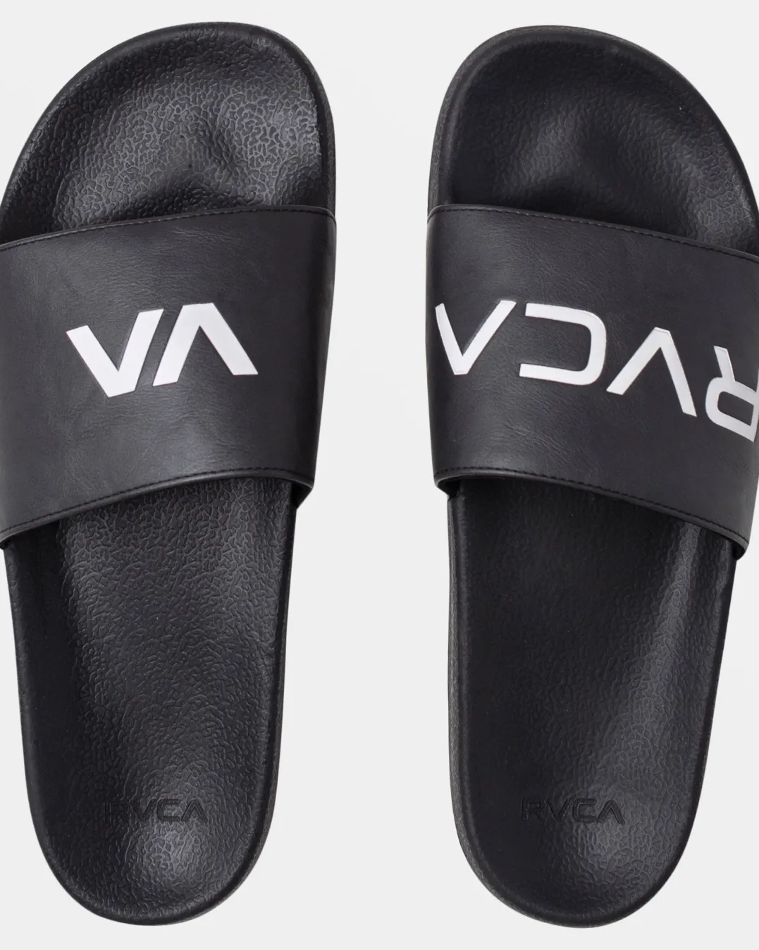 The RVCA Sport Slides combine ultimate breathable comfort and bold style in one. Featuring PU upper straps with a cushioned footbed, these sport slides are topped with debossed RVCA and VA logo branding. Featured here in the Black/White colorway.