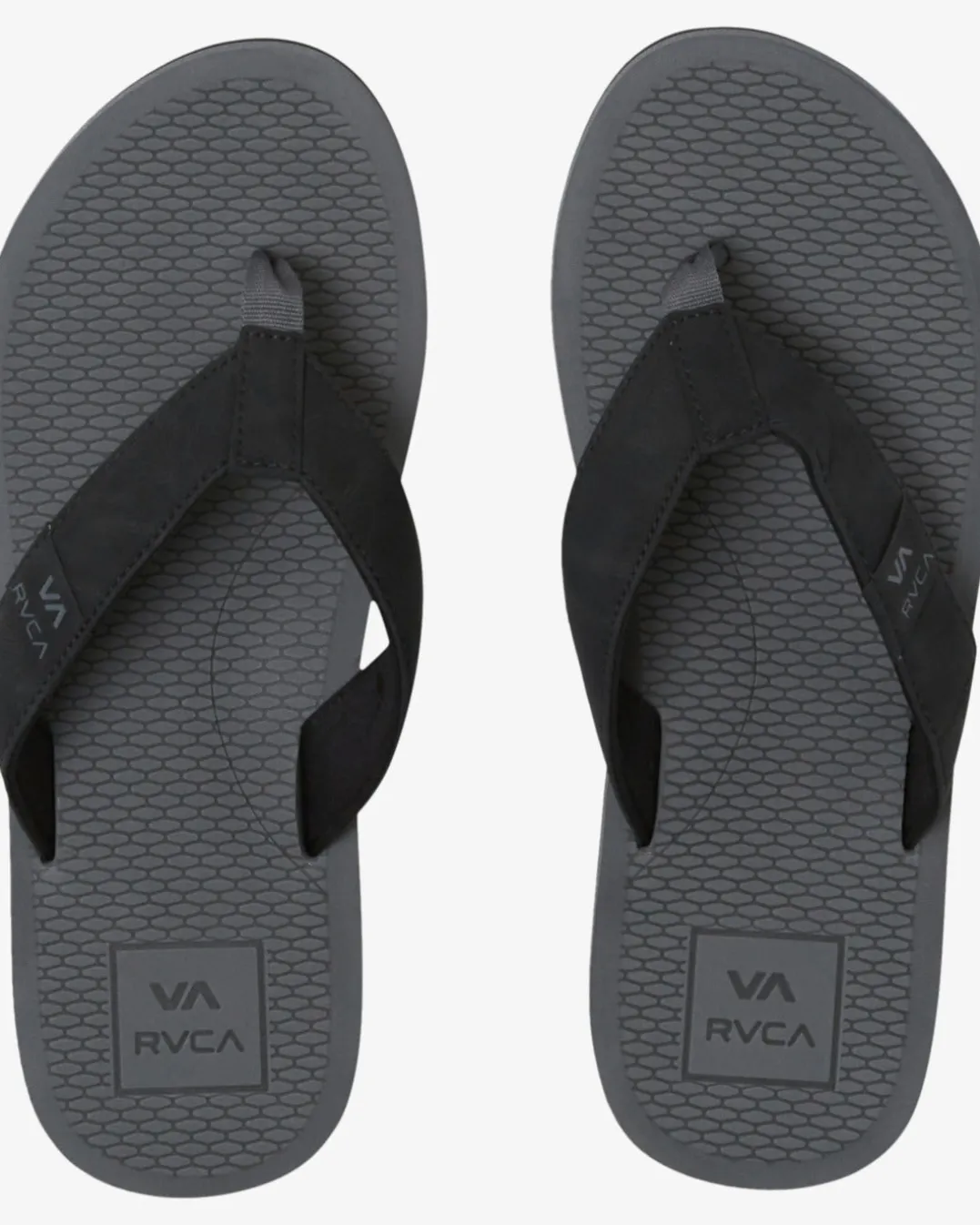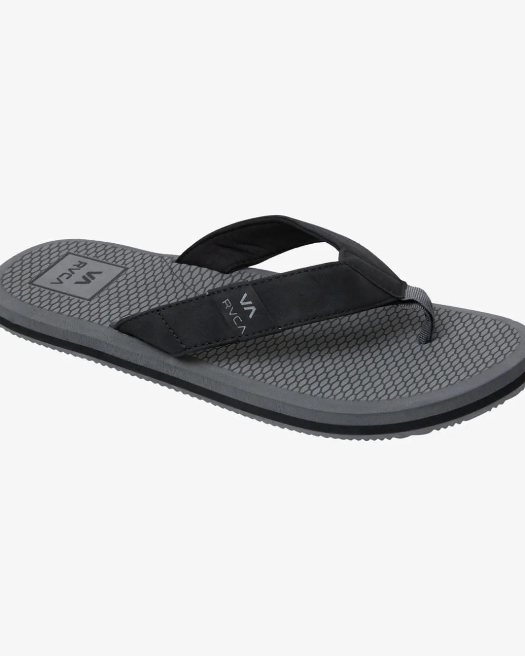 Elevating your warm-weather look with faux-leather straps, these Perennial Collection flip flop sandals have a padded footbed and a durable yet lightweight outsole. Featured here in the Charcoal colorway.