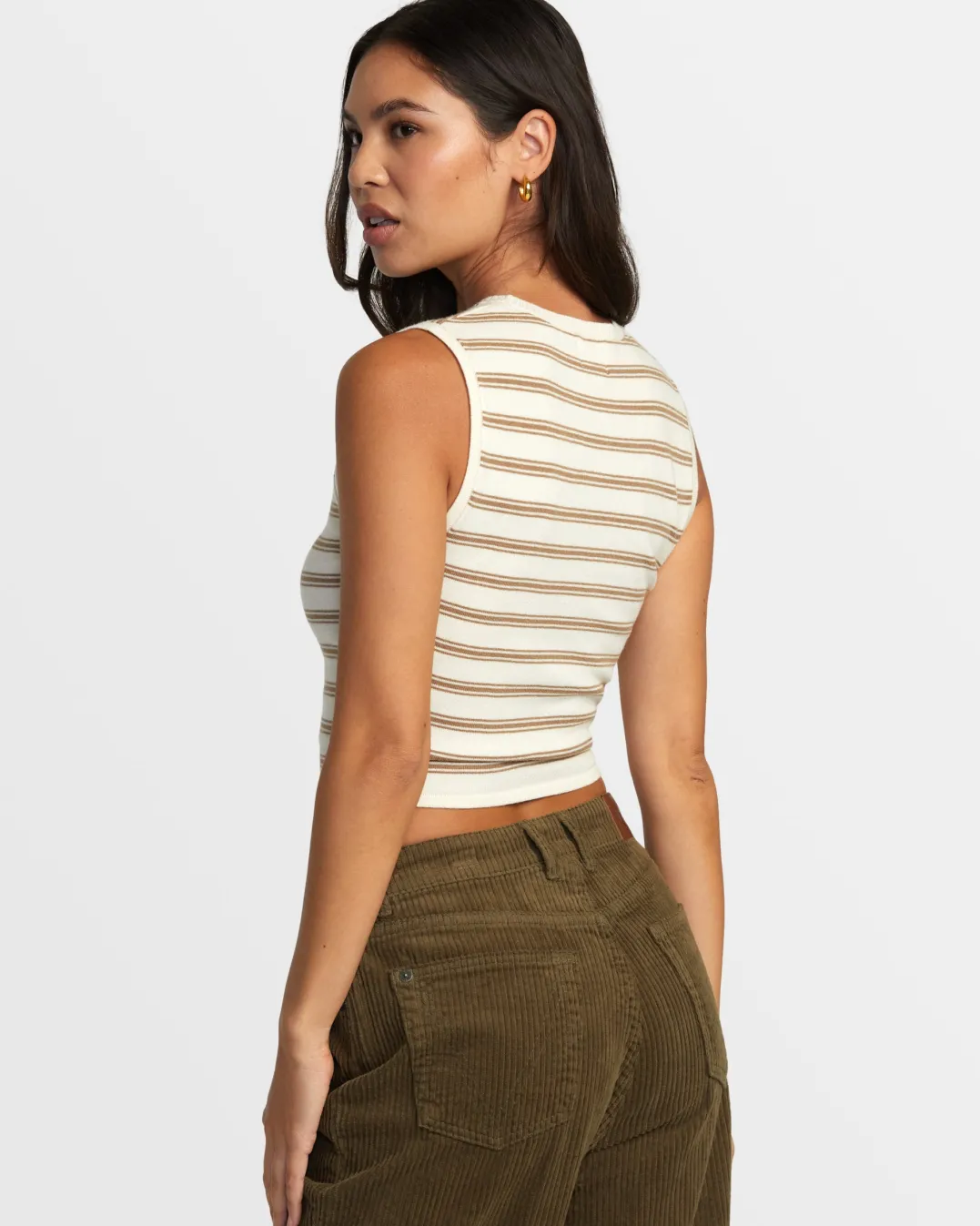 A modern take on a classic sweater vest, the Shiver Sweater Tank from RVCA Women’s Selects Collection has a boxy fit and a high crew neck. Crafted in a soft blended knit, this cozy tank top is a great transitional weather piece to carry you through the seasons. Featured here in the Latte colorway.