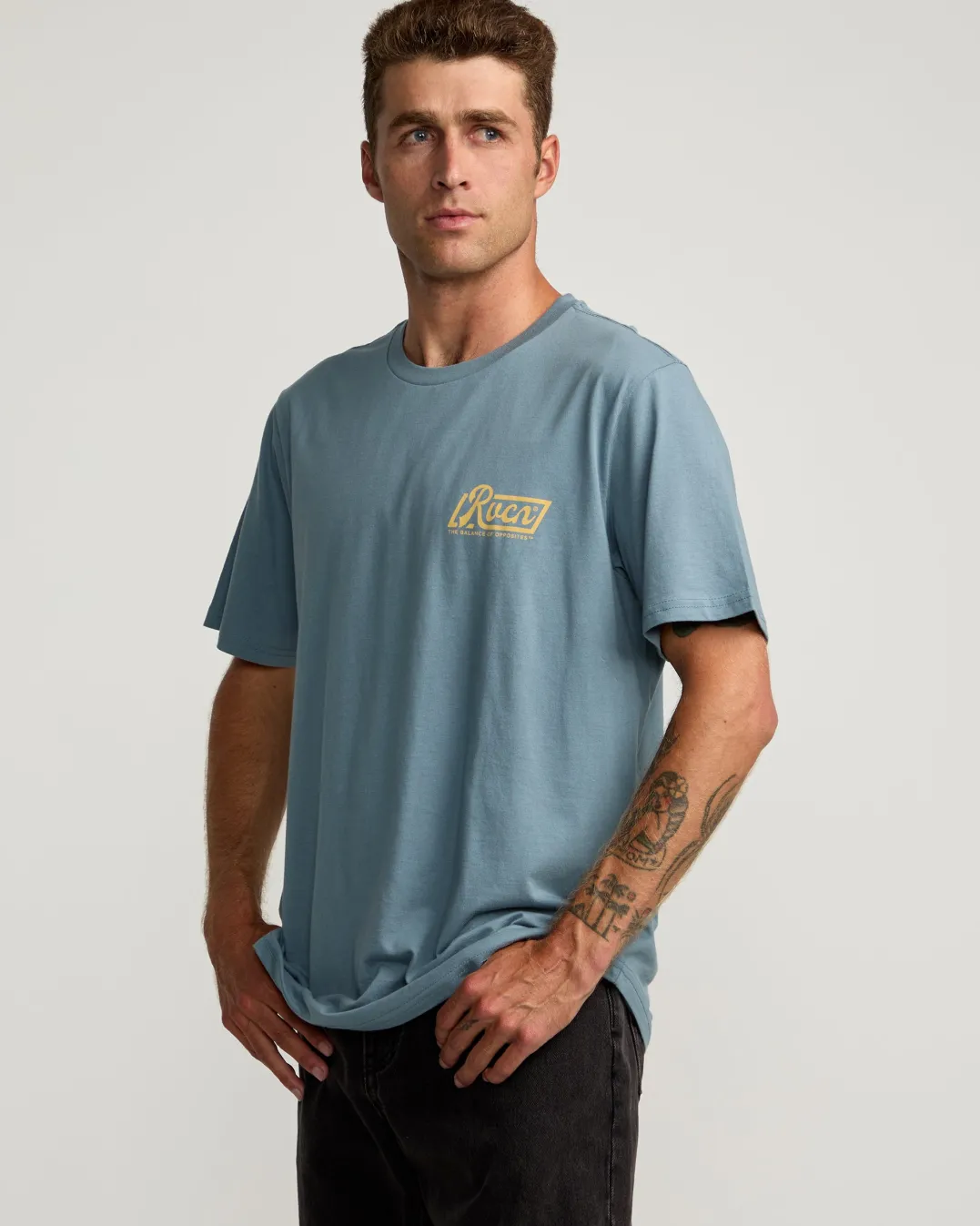 The RVCA Signature Short Sleeve T-Shirt features our iconic look. This soft jersey tee features a front and back screen print on a 100% cotton tee with red stitch detailing.