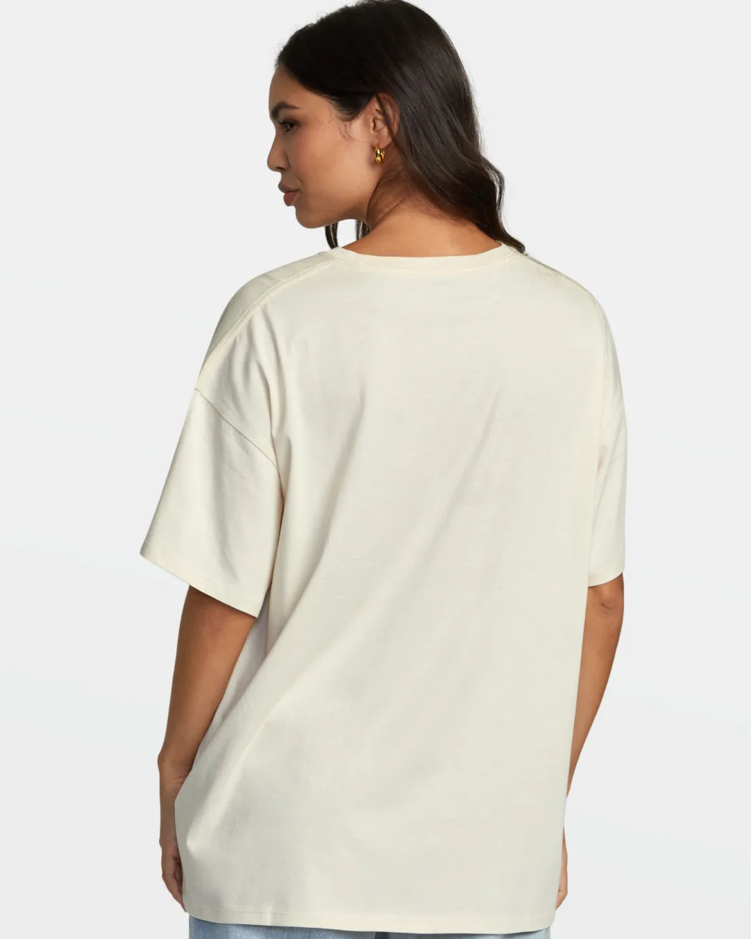 The Social Butter Fly oversized tee pairs lightweight organic cotton construction with a bold chest graphic in pigment-dyed ink to give it a vintage look. Featured here in the Latte colorway.