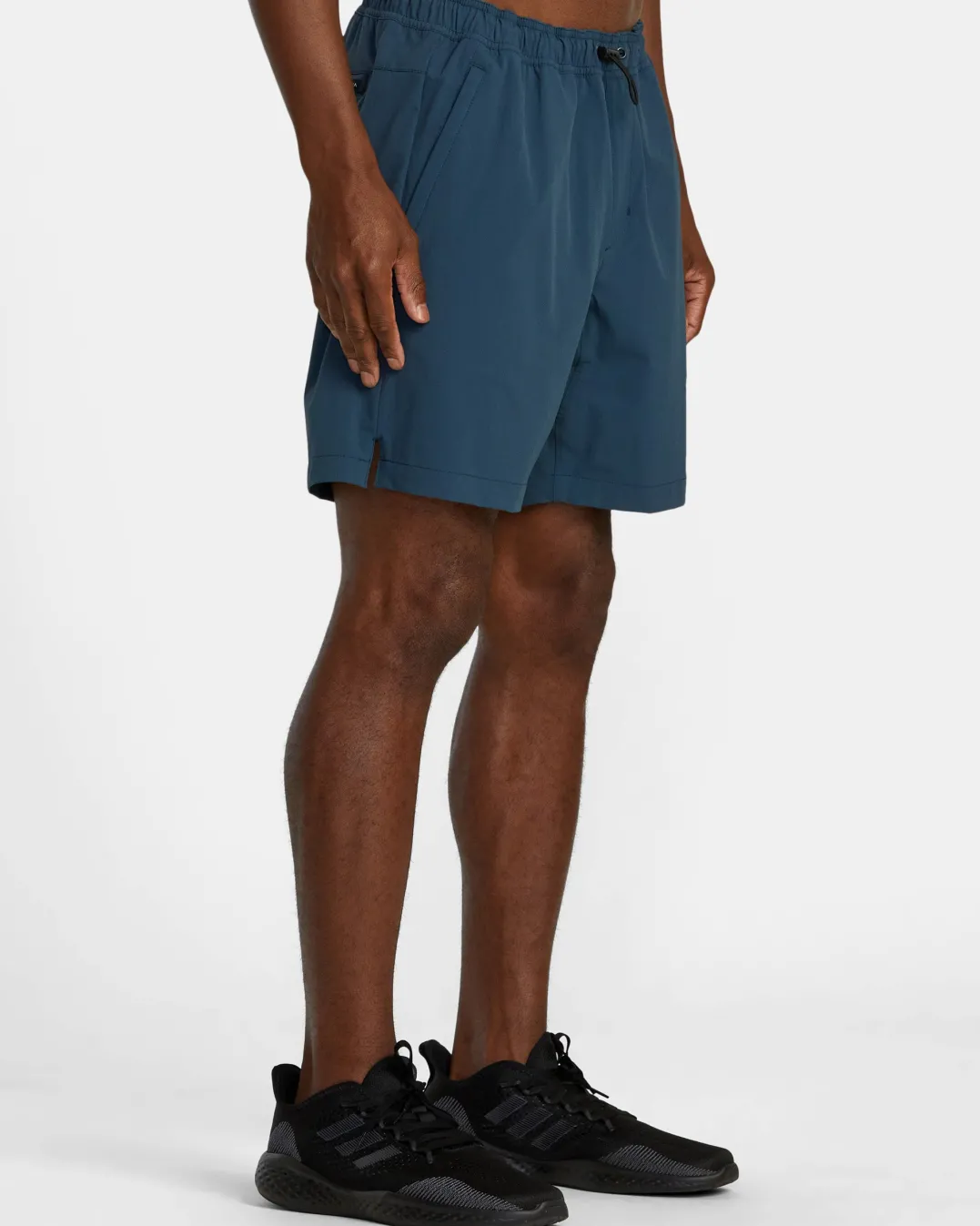 The RVCA Spectrum Tech shorts offer ultimate comfort with a streamlined design that blends technical performance, function, and style. These VA Sport Men’s Collection athletic shorts feature 4-way stretch fabric with multiple pockets and VA logo graphics. Featured here in the Petrol Blue colorway.