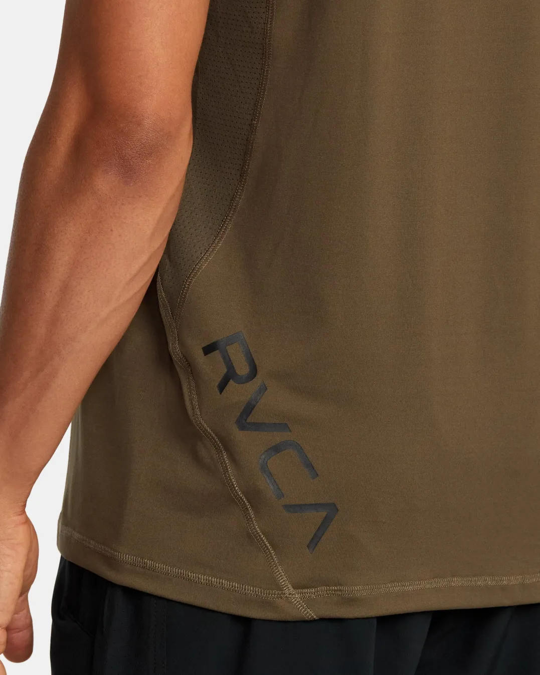 The RVCA Sport Vent Tee combines breathable comfort with effortless style. Made from knit polyester stretch with mesh gussets under the arms, this men’s sport t-shirt features a crew neckline, short sleeves and RVCA logo branding at the front and back. Featured here in the Mocha colorway.