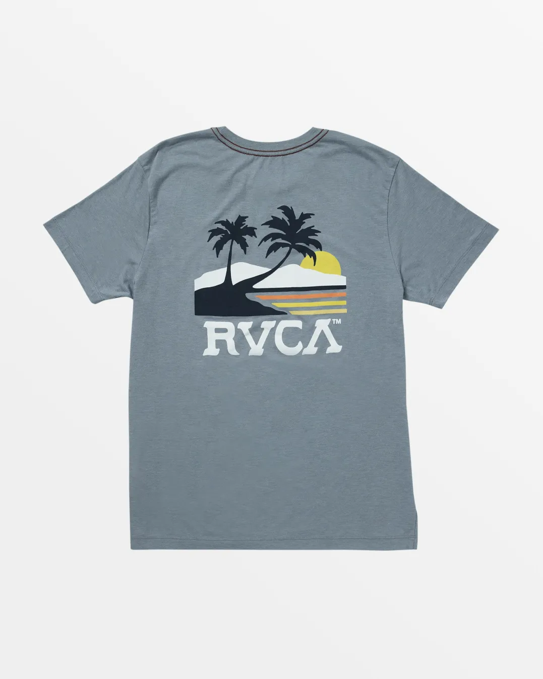 A vintage-dyed tee built for sunny days ahead. The slim fit and crewneck design keeps it classic while the screen printed graphics infuse laidback style. Featured here in the Flint Stone colorway.