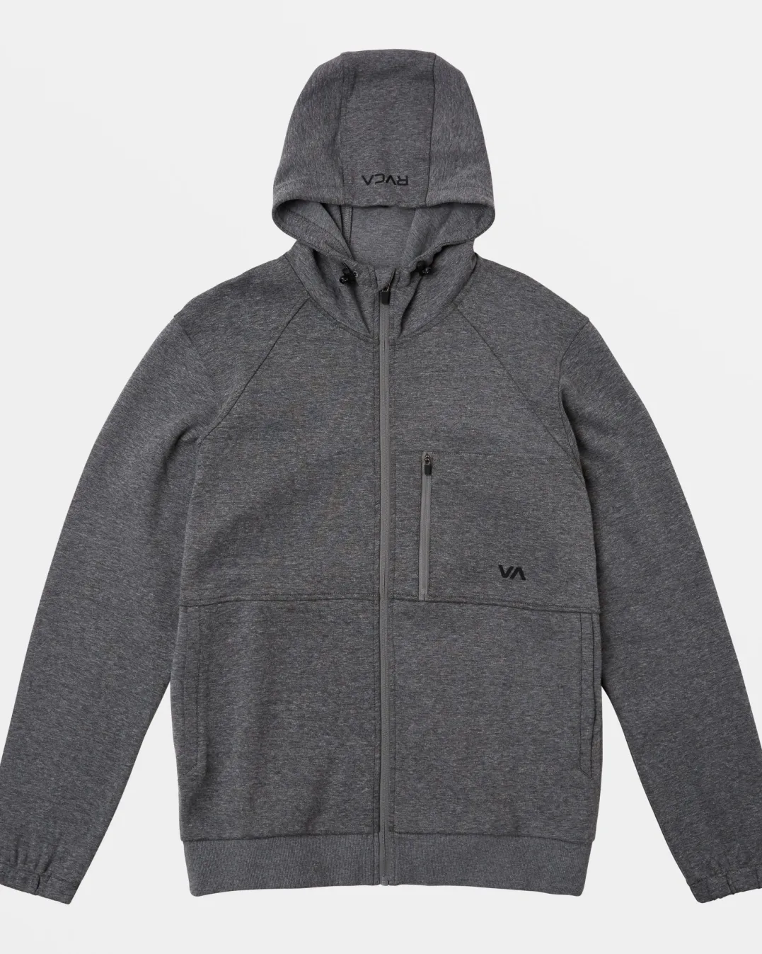 Go for solid comfort and solid vibes in the RVCA Tech Zip-Up Fleece Hoodie II. Made from soft cotton poly with fleece, this zip-up sweatshirt features an adjustable hood, long sleeves with elastic cuffs, ribbed hem, pockets throughout and VA Sport Collection branding. Featured here in the Heather Grey 2 colorway.