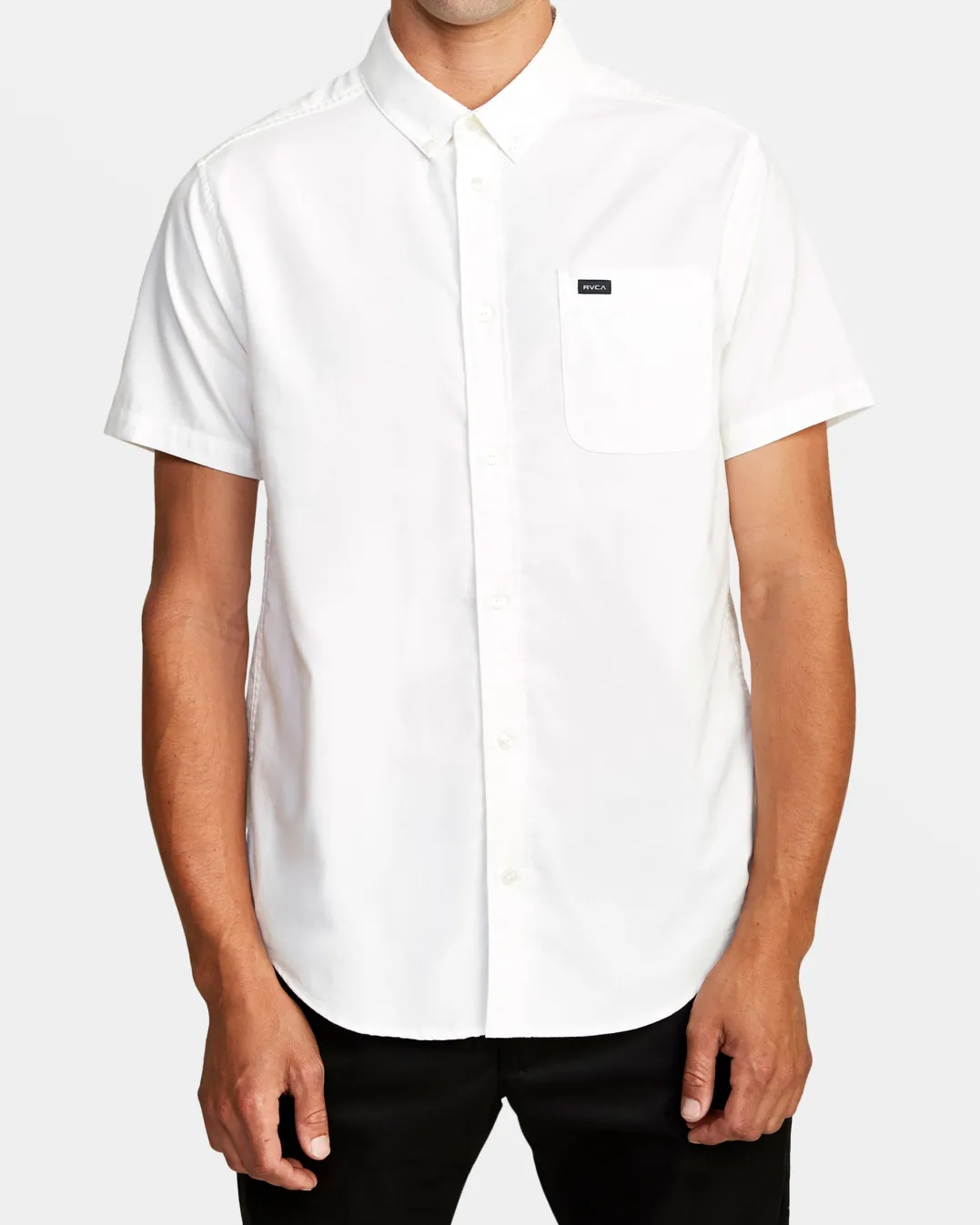The RVCA That’ll Do shirt puts style and comfort in the game with a slim fit, stretch cotton blend, button down collar, and scalloped hem. Featured here in the White colorway.