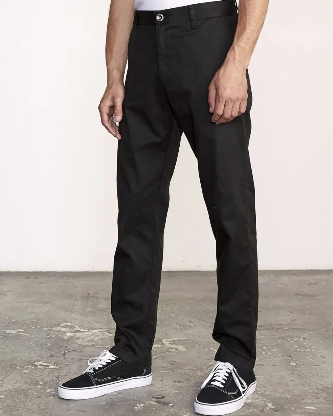 A classic, straight fit that’s stretchy and comfortable. The RVCA Weekend has everything you want in a pant. Crafted from durable and resistant fabric, these men’s pants feature a zipper fly, button closure, front coin pocket, front slash pockets, and back welt pockets with signature RVCA solo labeling. Featured here in the Black colorway.