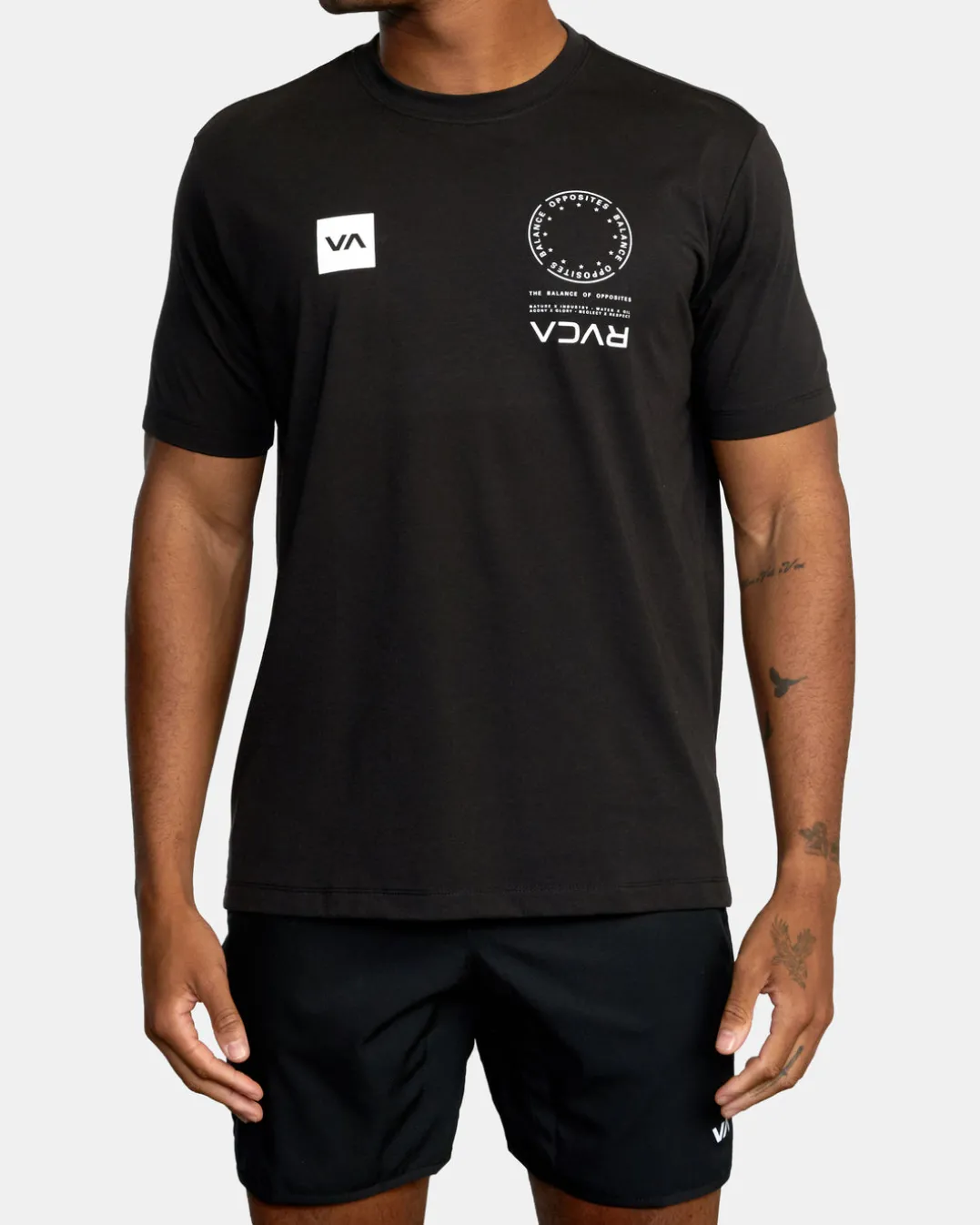 The RVCA VA Mark Short Sleeve Tee keeps you going through any workout. Made from soft jersey treated in Odour-Control, odour-fighting technology, this moisture-wicking, quick-drying, lightweight t-shirt features DriRelease® coating, a crew neckline, short sleeves, screened inside neck and VA Sport Collection prints throughout. Featured here in the Black colorway.